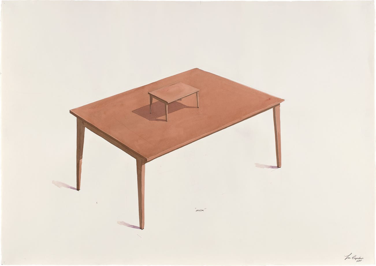 CubanThe Cuban artist collective Los Carpinteros (The Carpenters) was formed in 1992 and has since produced some of the most important contemporary art in Latin America. Originally comprised of Marco Castillo, Dagoberto Rodriguez and Alexandre Arrechea (who left the group in June 2003), the trio abandoned the concept of individual authorship and instead worked in the tradition of guild and artisan workshops. Their technically sophisticated drawings and sculptures are primarily inspired by design and architectural constructions, such as desks, chairs, armoires and other pieces of furniture. In illustrating seemingly banal objects, Los Carpinteros comment on materialism, highlighting the practicality as well as the uselessness of the depicted objects.