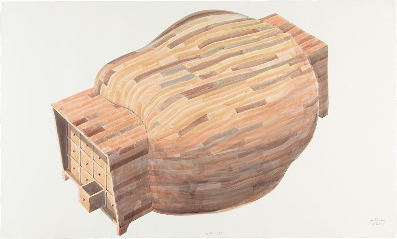 CubanThe Cuban artist collective Los Carpinteros (The Carpenters) was formed in 1992 and has since produced some of the most important contemporary art in Latin America. Originally comprised of Marco Castillo, Dagoberto Rodriguez and Alexandre Arrechea (who left the group in June 2003), the trio abandoned the concept of individual authorship and instead worked in the tradition of guild and artisan workshops. Their technically sophisticated drawings and sculptures are primarily inspired by design and architectural constructions, such as desks, chairs, armoires and other pieces of furniture. In illustrating seemingly banal objects, Los Carpinteros comment on materialism, highlighting the practicality as well as the uselessness of the depicted objects.