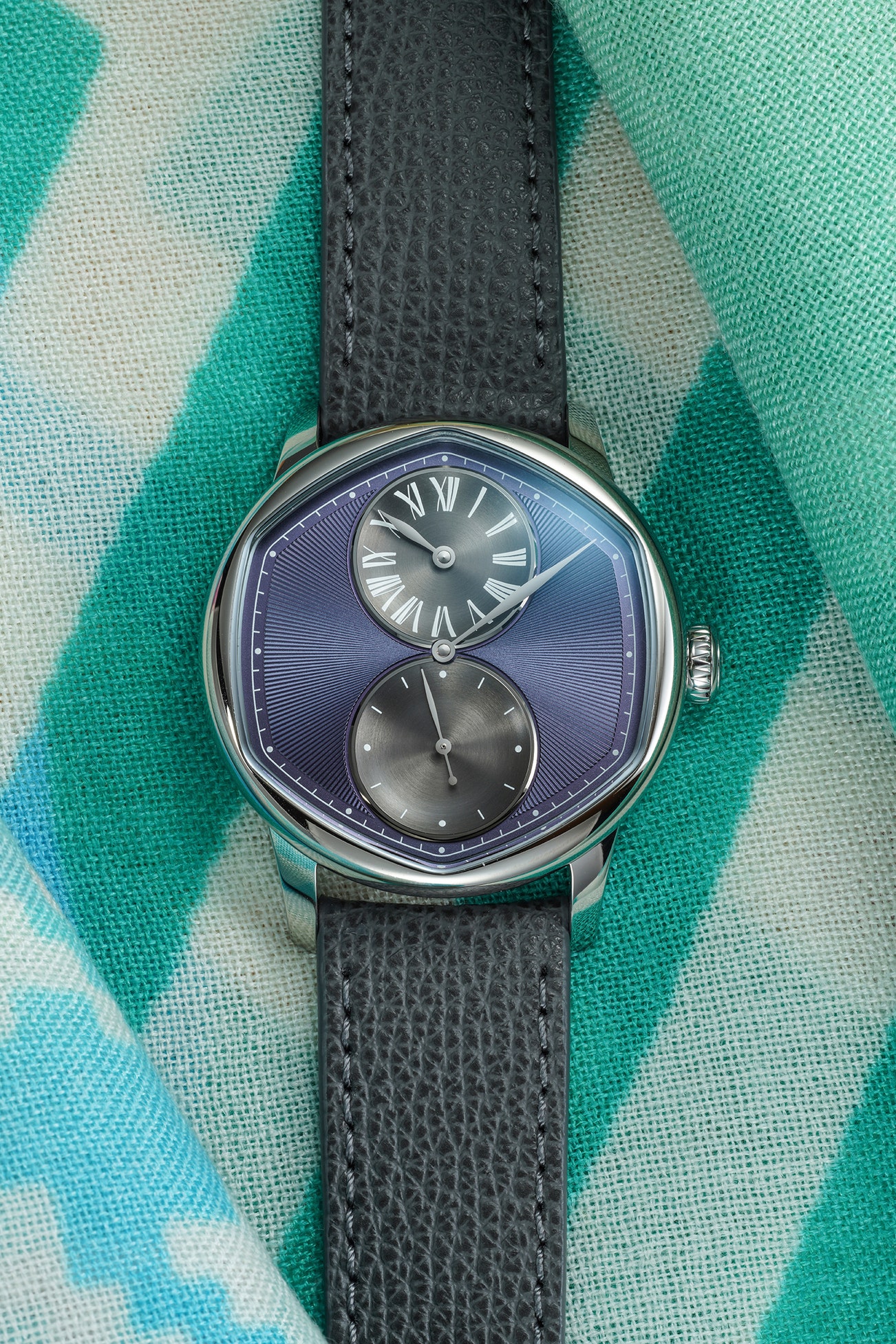 - Housed in a polished stainless steel case - highly inspired by Johner's avant garde case design - with a refined 39mm diameter, the watch is sleek and versatile. Its domed sapphire crystal, treated with an anti-reflective coating on both sides, ensures clarity while offering durability. The case back is see-through, allowing a glimpse of the meticulously crafted movement.