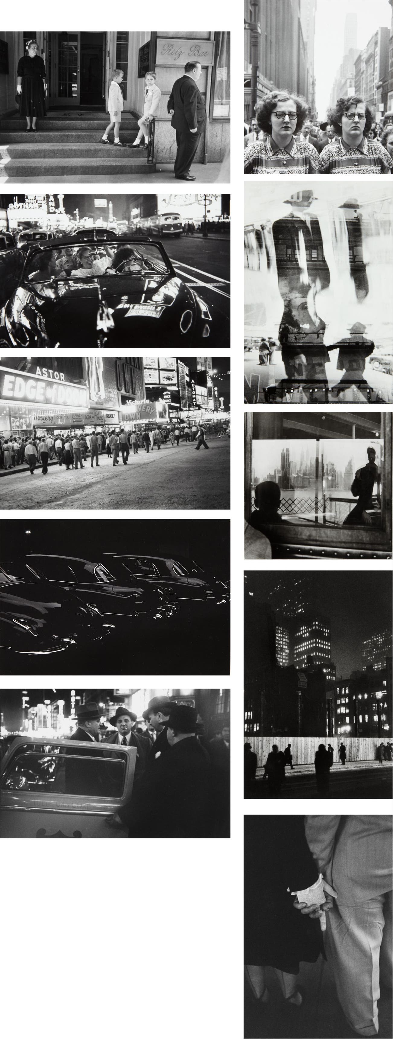 Construction Site on Madison Ave. Looking Toward Rockefeller Center, New York, N.Y., 1947-49; Garage, Park Ave., New York, N.Y., 1950; New York City, 1950; Freudian Handclasp, New York, N.Y., 1946-49; Ritz Bar, New York, N.Y., 1947-48; 5th Ave., New York, N.Y., c. 1948; 42nd St. Collage, New York, N.Y., 1946-49; Staten Island Ferry, 1946 ; Repaving Times Square, New York City, 1950; Broadway, New York, N.Y., 1949-50