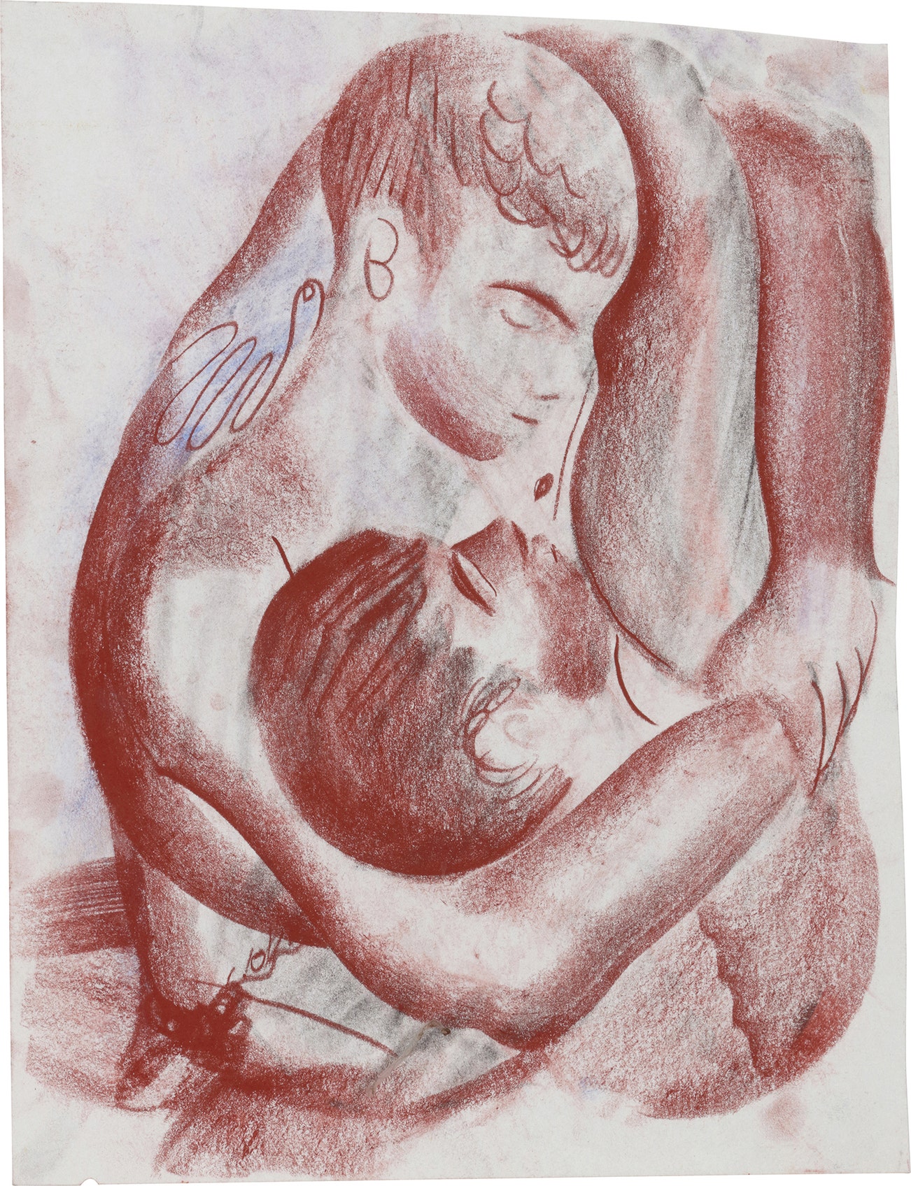 sanguine and coloured pencil on paper