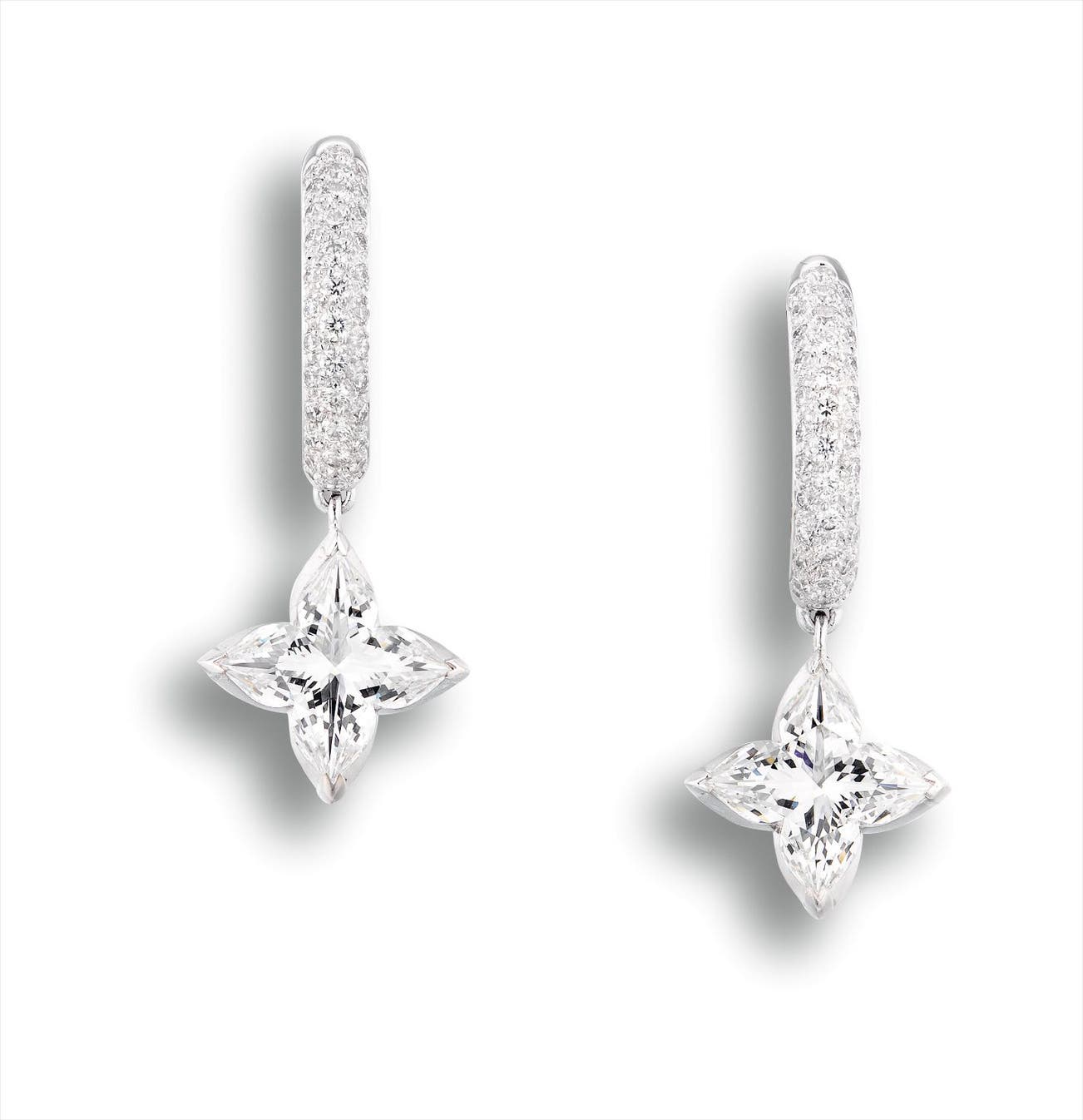 Two 'Louis Vuitton' cut diamonds, 1.81 and 1.81 caratsBrilliant-cut diamonds on hook surmount18 karat white goldFrench assay marks<em>With a Louis Vuitton presentation box </em>(1.81 and 1.81-carat diamonds)