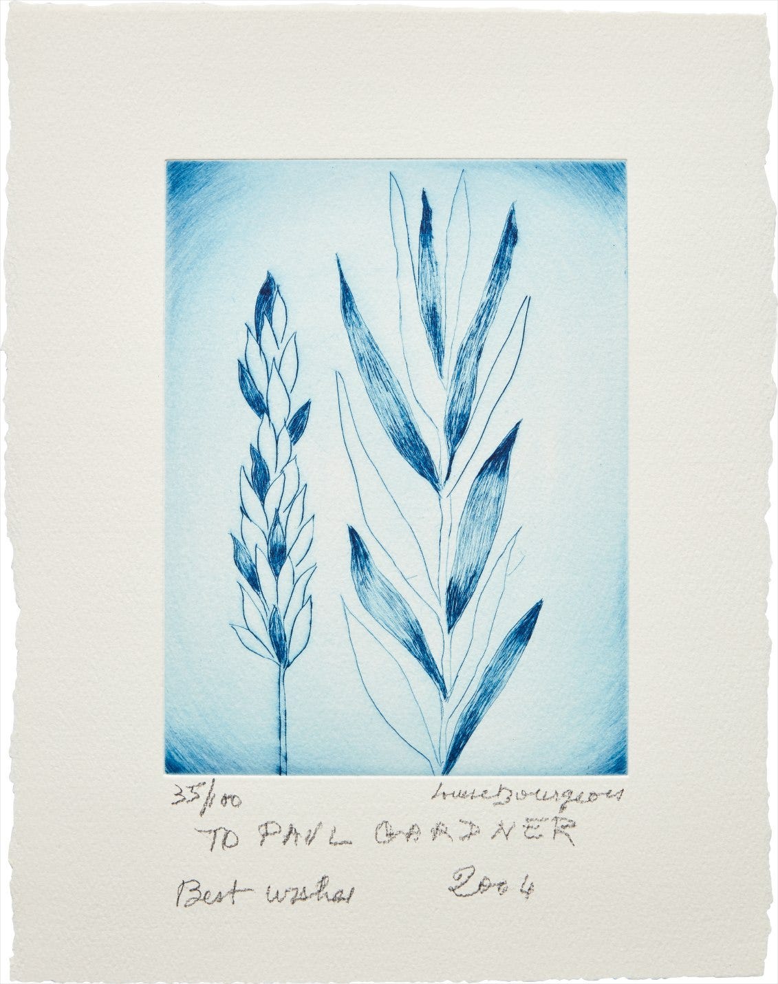 Bourgeois was a prolific printmaker, draftsman, sculptor and painter. She employed diverse materials including metal, fabric, wood, plaster, paper and paint in a range of scale — both monumental and intimate. She used recurring themes and subjects (animals, insects, architecture, the figure, text and abstraction) as form and metaphor to explore the fragility of relationships and the human body. Her artworks are meditations of emotional states: loneliness, jealousy, pride, anger, fear, love and longing.