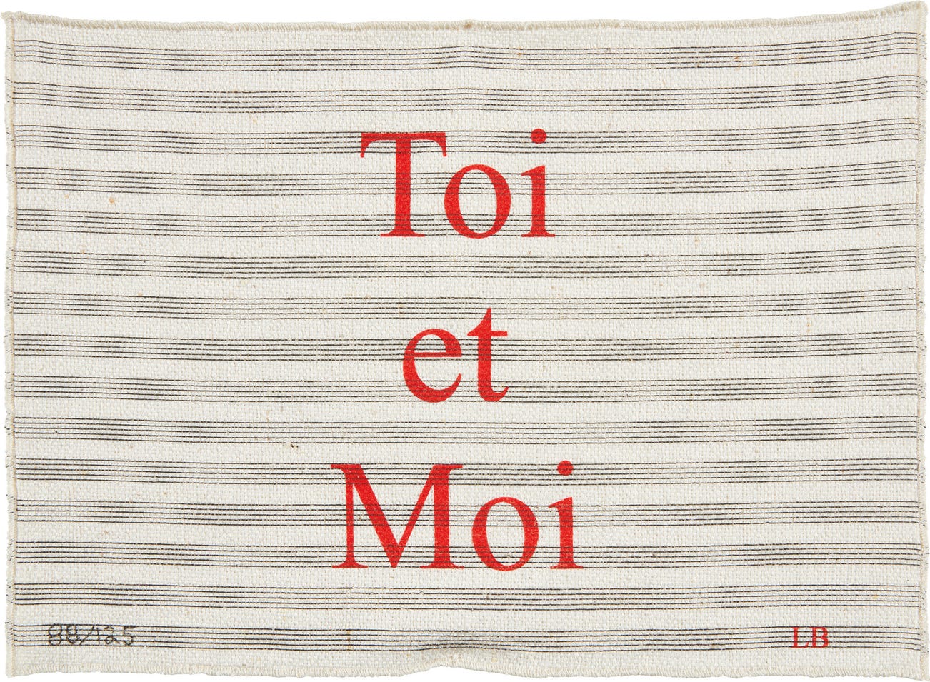 Screenprint in black and red, on woven fabric, the full sheet.