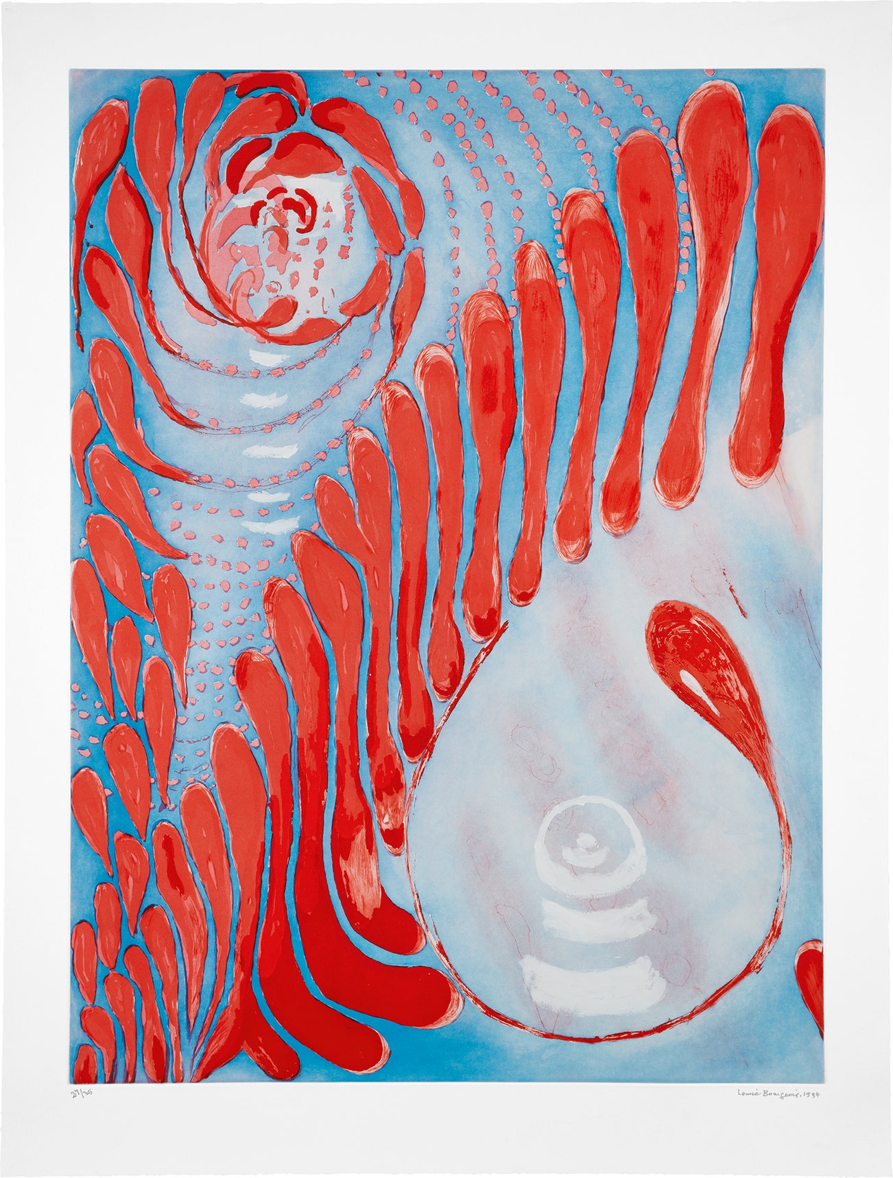Bourgeois was a prolific printmaker, draftsman, sculptor and painter. She employed diverse materials including metal, fabric, wood, plaster, paper and paint in a range of scale — both monumental and intimate. She used recurring themes and subjects (animals, insects, architecture, the figure, text and abstraction) as form and metaphor to explore the fragility of relationships and the human body. Her artworks are meditations of emotional states: loneliness, jealousy, pride, anger, fear, love and longing.
