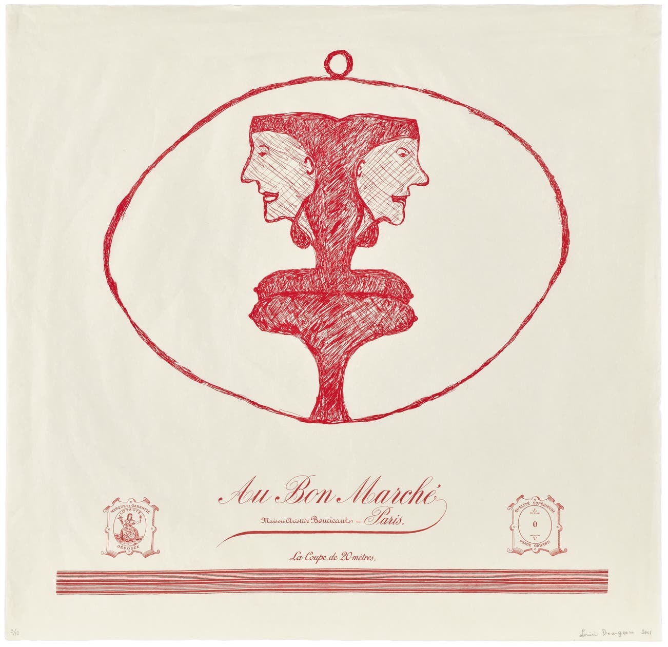 Bourgeois was a prolific printmaker, draftsman, sculptor and painter. She employed diverse materials including metal, fabric, wood, plaster, paper and paint in a range of scale — both monumental and intimate. She used recurring themes and subjects (animals, insects, architecture, the figure, text and abstraction) as form and metaphor to explore the fragility of relationships and the human body. Her artworks are meditations of emotional states: loneliness, jealousy, pride, anger, fear, love and longing.