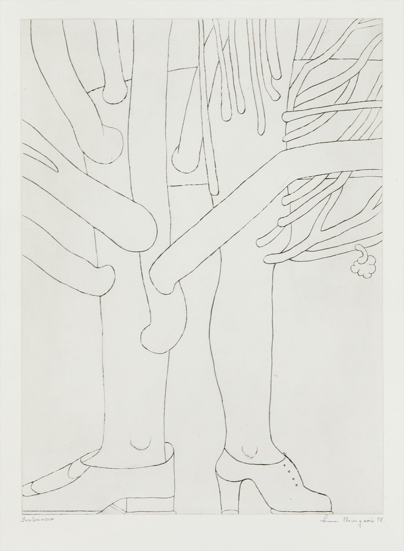 Bourgeois was a prolific printmaker, draftsman, sculptor and painter. She employed diverse materials including metal, fabric, wood, plaster, paper and paint in a range of scale — both monumental and intimate. She used recurring themes and subjects (animals, insects, architecture, the figure, text and abstraction) as form and metaphor to explore the fragility of relationships and the human body. Her artworks are meditations of emotional states: loneliness, jealousy, pride, anger, fear, love and longing.