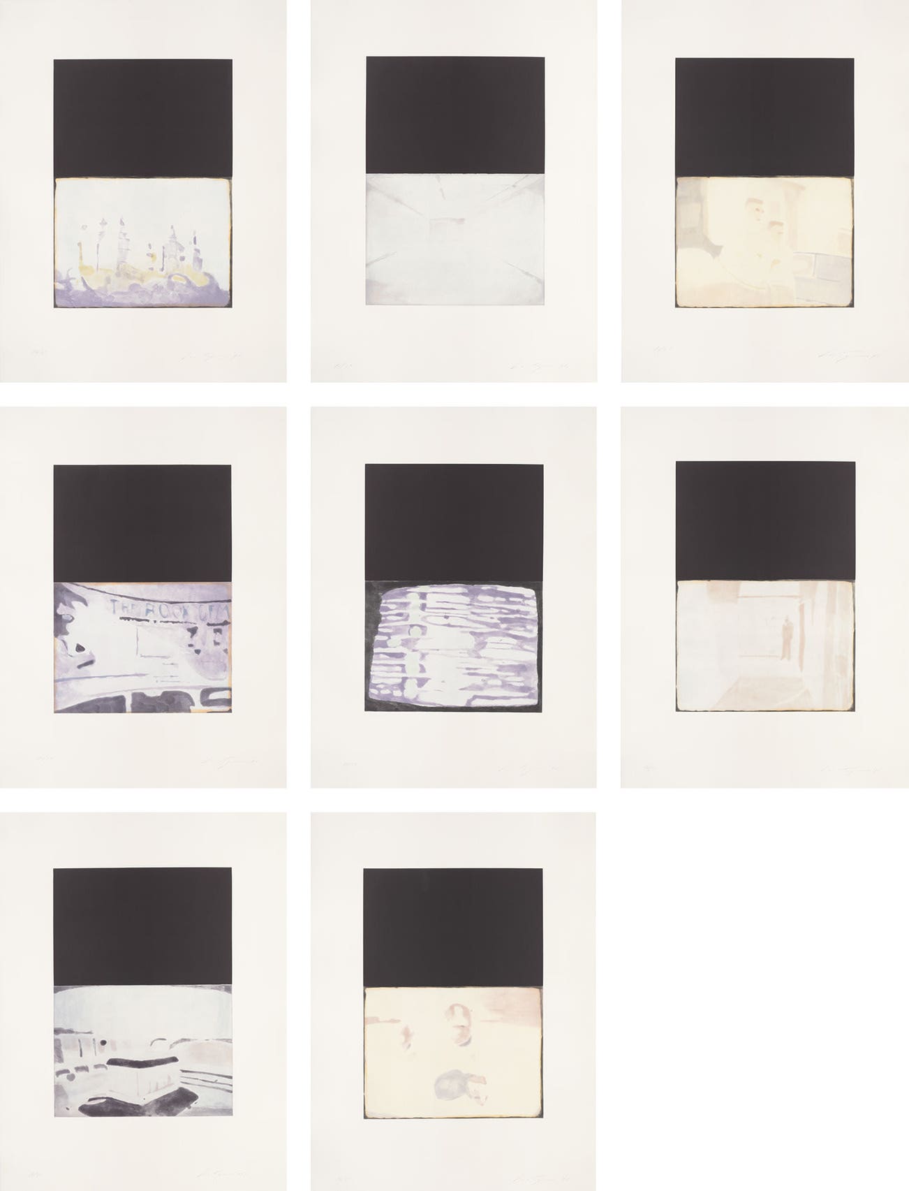 The complete set of eight etching and aquatints in colours, on BFK Rives paper, with full margins.