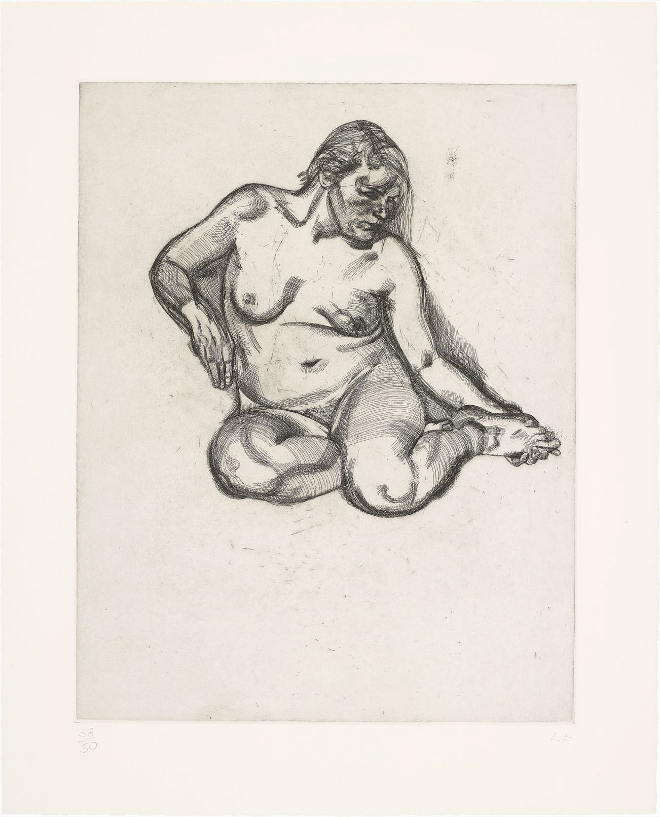 In his paintings, Freud's layers of impasto jabs of paint create a surprisingly delicate, translucent depiction of flesh, while his etchings employ an economy of line that implies the figure more than it illustrates it. Charismatic but irascible, Freud worked only from sitters that he knew, consistently focusing on translating his direct perceptions. The resulting portraits are redolent with a stark and evocative psychological intensity, underpinned by an unexpected tenderness towards the subject.