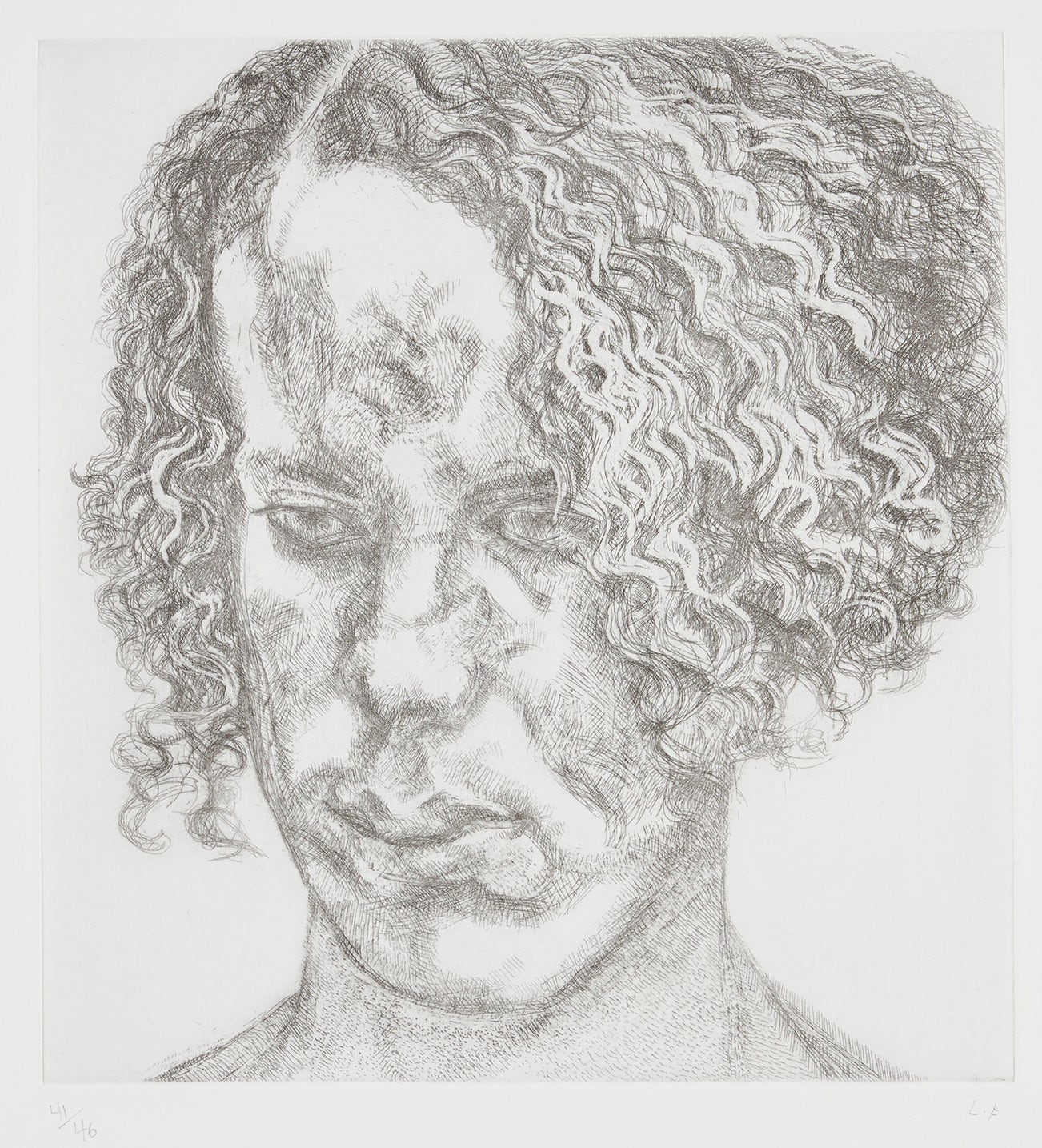 In his paintings, Freud's layers of impasto jabs of paint create a surprisingly delicate, translucent depiction of flesh, while his etchings employ an economy of line that implies the figure more than it illustrates it. Charismatic but irascible, Freud worked only from sitters that he knew, consistently focusing on translating his direct perceptions. The resulting portraits are redolent with a stark and evocative psychological intensity, underpinned by an unexpected tenderness towards the subject.