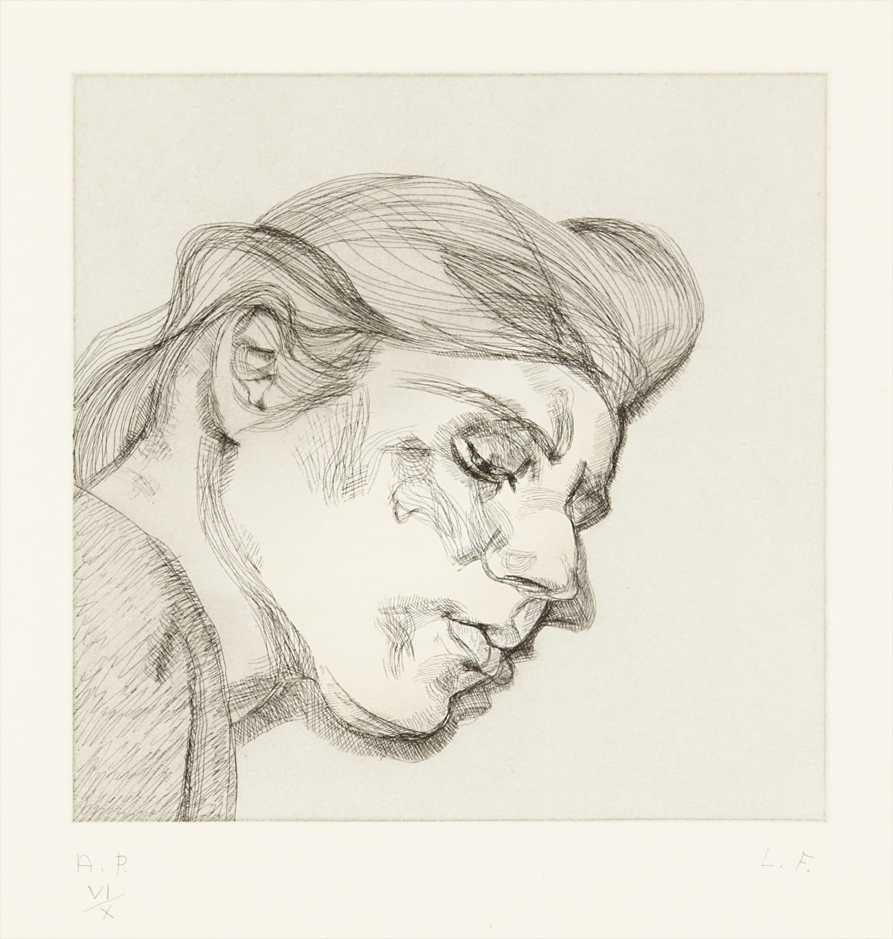 In his paintings, Freud's layers of impasto jabs of paint create a surprisingly delicate, translucent depiction of flesh, while his etchings employ an economy of line that implies the figure more than it illustrates it. Charismatic but irascible, Freud worked only from sitters that he knew, consistently focusing on translating his direct perceptions. The resulting portraits are redolent with a stark and evocative psychological intensity, underpinned by an unexpected tenderness towards the subject.