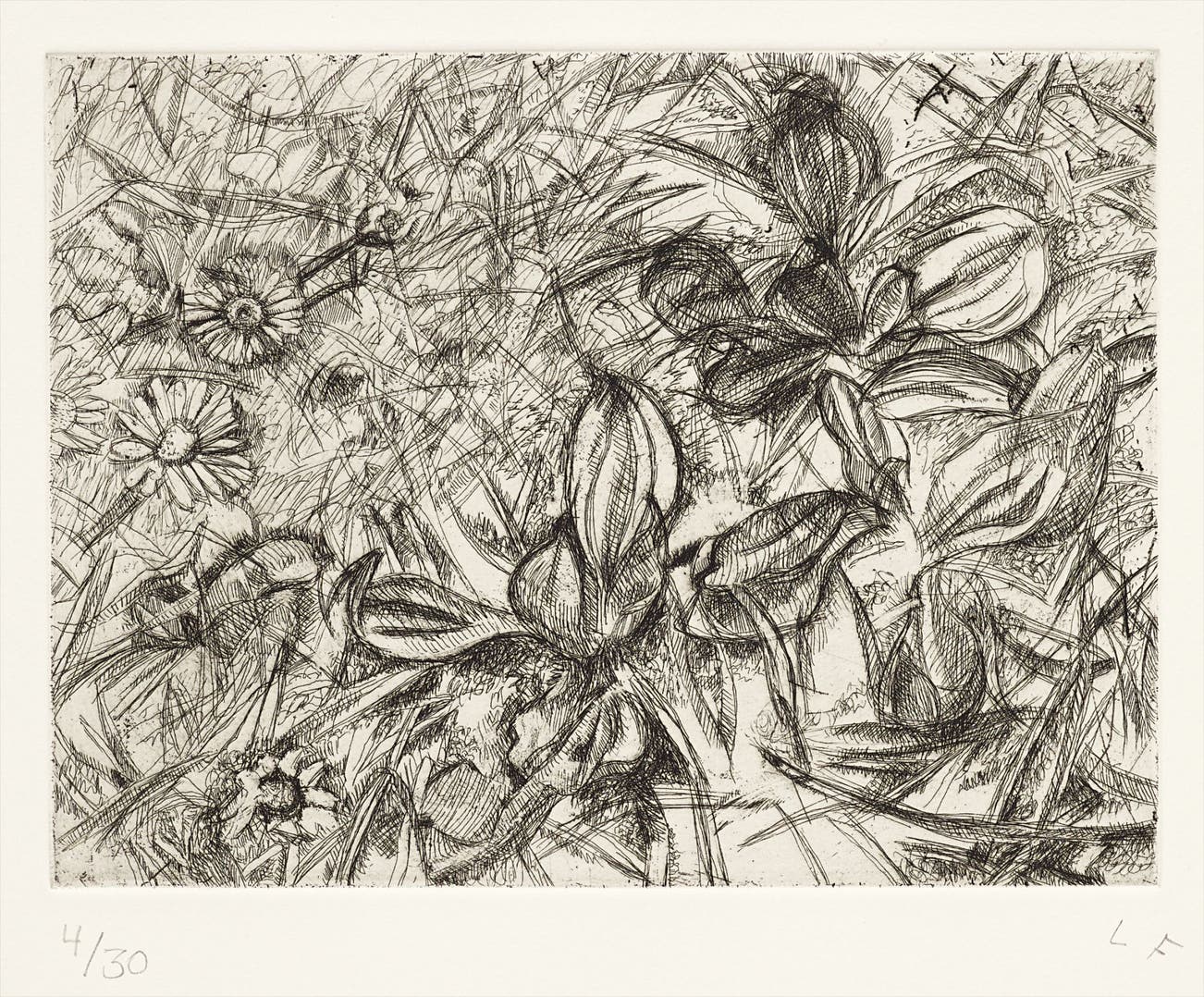 In his paintings, Freud's layers of impasto jabs of paint create a surprisingly delicate, translucent depiction of flesh, while his etchings employ an economy of line that implies the figure more than it illustrates it. Charismatic but irascible, Freud worked only from sitters that he knew, consistently focusing on translating his direct perceptions. The resulting portraits are redolent with a stark and evocative psychological intensity, underpinned by an unexpected tenderness towards the subject.