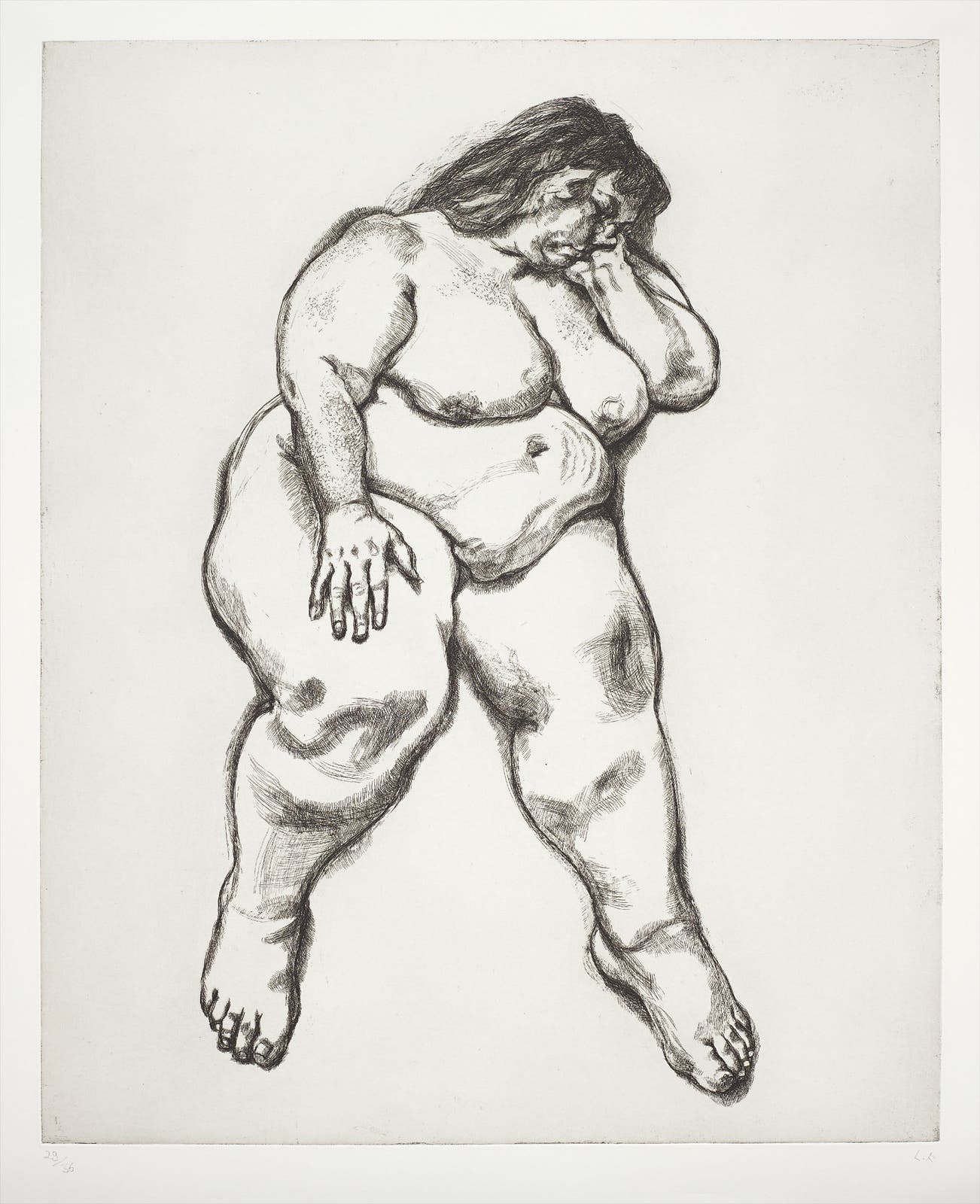 In his paintings, Freud's layers of impasto jabs of paint create a surprisingly delicate, translucent depiction of flesh, while his etchings employ an economy of line that implies the figure more than it illustrates it. Charismatic but irascible, Freud worked only from sitters that he knew, consistently focusing on translating his direct perceptions. The resulting portraits are redolent with a stark and evocative psychological intensity, underpinned by an unexpected tenderness towards the subject.