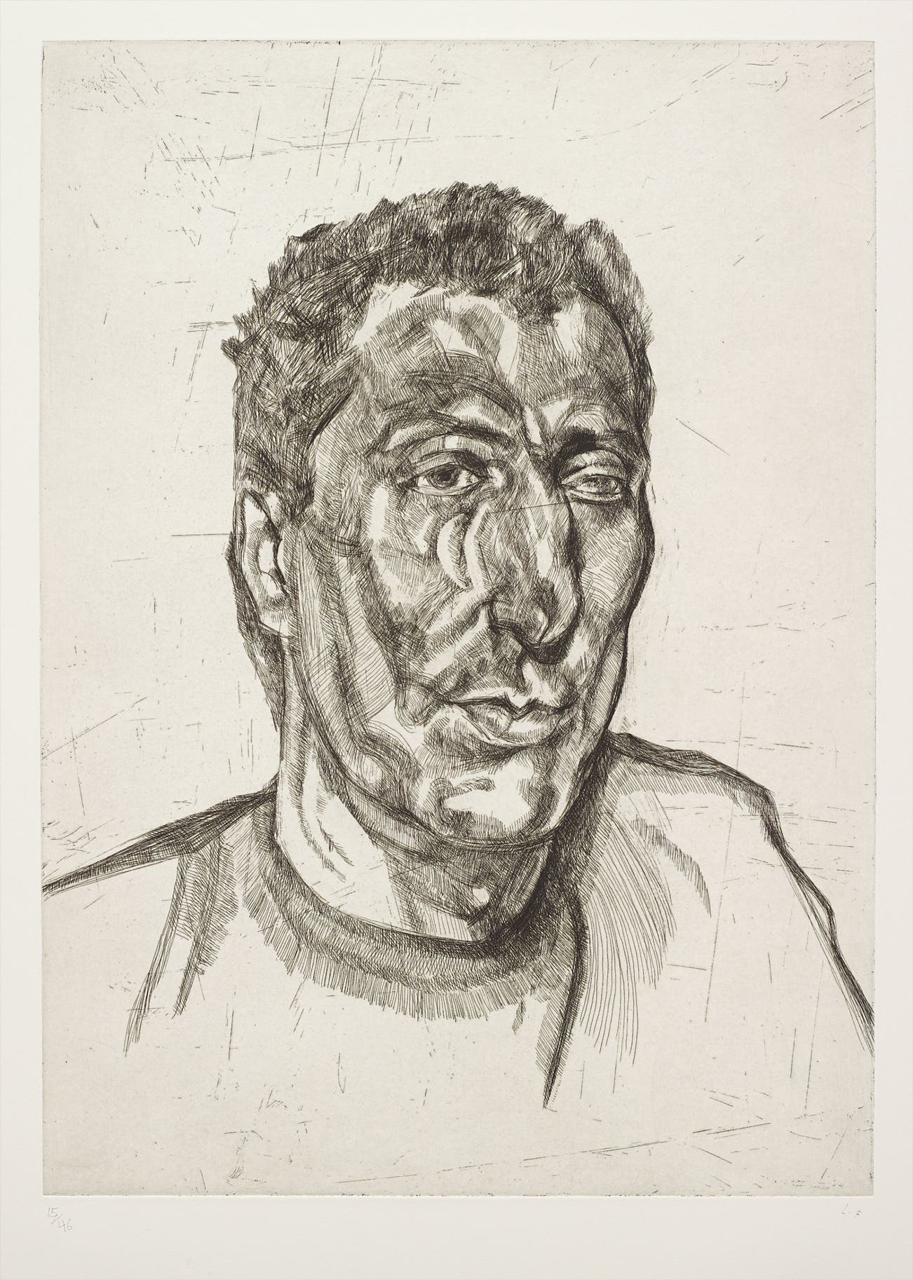In his paintings, Freud's layers of impasto jabs of paint create a surprisingly delicate, translucent depiction of flesh, while his etchings employ an economy of line that implies the figure more than it illustrates it. Charismatic but irascible, Freud worked only from sitters that he knew, consistently focusing on translating his direct perceptions. The resulting portraits are redolent with a stark and evocative psychological intensity, underpinned by an unexpected tenderness towards the subject.