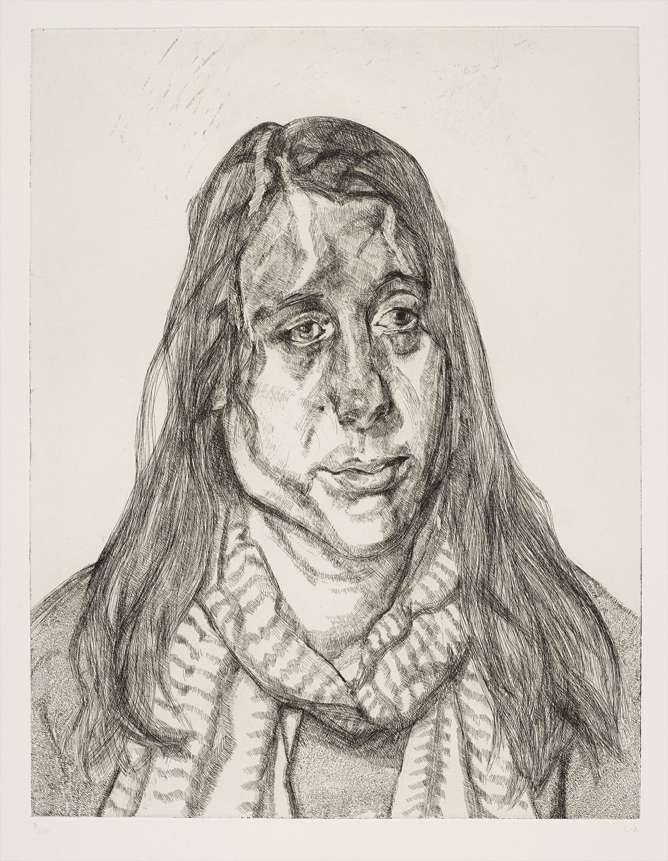 In his paintings, Freud's layers of impasto jabs of paint create a surprisingly delicate, translucent depiction of flesh, while his etchings employ an economy of line that implies the figure more than it illustrates it. Charismatic but irascible, Freud worked only from sitters that he knew, consistently focusing on translating his direct perceptions. The resulting portraits are redolent with a stark and evocative psychological intensity, underpinned by an unexpected tenderness towards the subject.