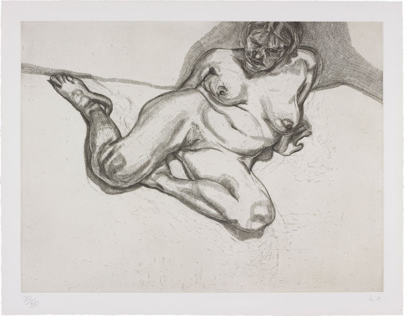 In his paintings, Freud's layers of impasto jabs of paint create a surprisingly delicate, translucent depiction of flesh, while his etchings employ an economy of line that implies the figure more than it illustrates it. Charismatic but irascible, Freud worked only from sitters that he knew, consistently focusing on translating his direct perceptions. The resulting portraits are redolent with a stark and evocative psychological intensity, underpinned by an unexpected tenderness towards the subject.