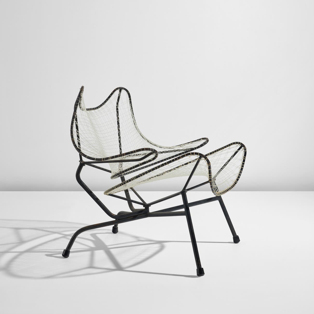 Painted iron, nylon string, rubber.