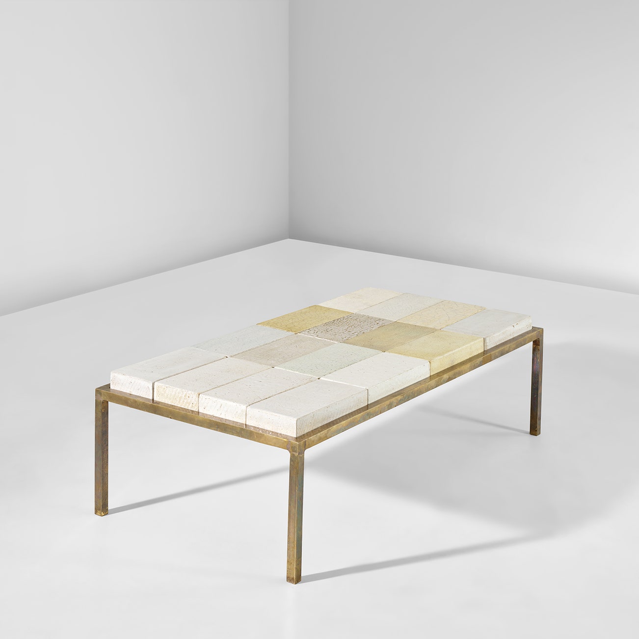 The present lot is the only known piece of furniture ever created by Lucie Rie. The frame was designed in collaboration with the Italian post-war artist Vilmo Gilbello.