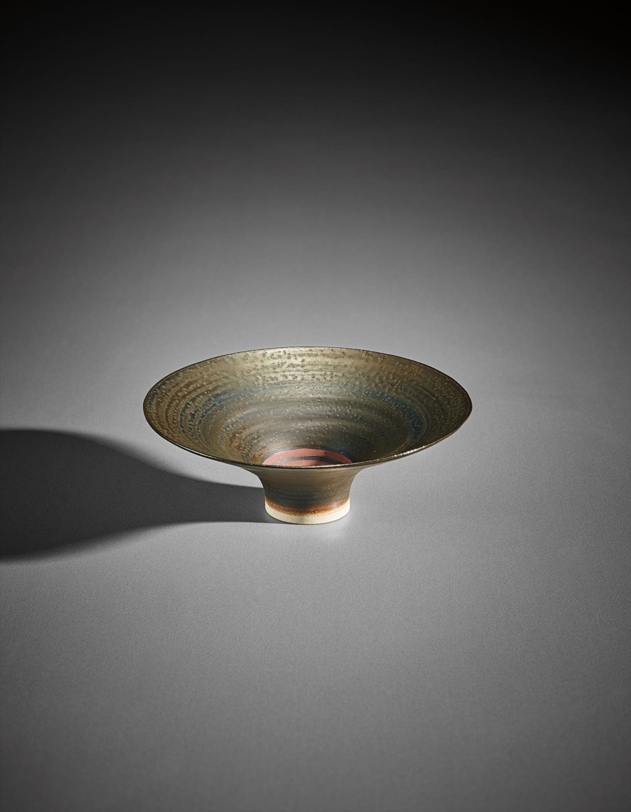 Austrian | B. 1902 D. 1995Dame Lucie Rie studied under Michael Powolny at the Kunstgewerbeschule in Vienna before immigrating to London in 1938. In London she started out making buttons for the fashion industry before producing austere, sparsely decorated tableware that caught the attention of modernist interior decorators. Eventually she hit her stride with the pitch-perfect footed bowls and flared vases for which she is best-known today. She worked in porcelain and stoneware, applying glaze directly to the unfired body and firing only once. She limited decoration to incised lines, subtle spirals and golden manganese lips, allowing the beauty of her thin-walled vessels to shine through. In contrast with the rustic pots of English ceramicist Bernard Leach, who is considered an heir to the Arts and Crafts movement, collectors and scholars revere Rie for creating pottery that was in dialogue with the design and architecture of European Modernism.