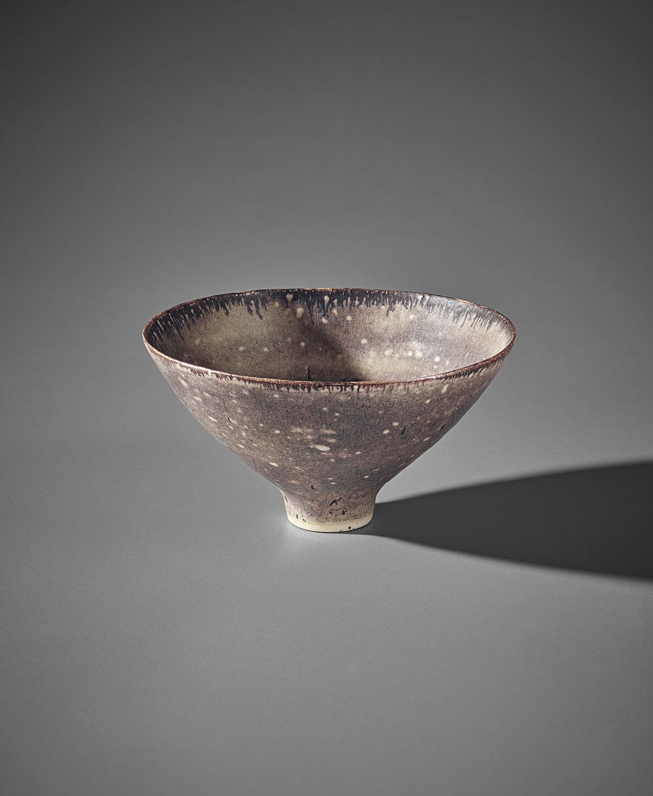 Austrian | B. 1902 D. 1995Dame Lucie Rie studied under Michael Powolny at the Kunstgewerbeschule in Vienna before immigrating to London in 1938. In London she started out making buttons for the fashion industry before producing austere, sparsely decorated tableware that caught the attention of modernist interior decorators. Eventually she hit her stride with the pitch-perfect footed bowls and flared vases for which she is best-known today. She worked in porcelain and stoneware, applying glaze directly to the unfired body and firing only once. She limited decoration to incised lines, subtle spirals and golden manganese lips, allowing the beauty of her thin-walled vessels to shine through. In contrast with the rustic pots of English ceramicist Bernard Leach, who is considered an heir to the Arts and Crafts movement, collectors and scholars revere Rie for creating pottery that was in dialogue with the design and architecture of European Modernism.