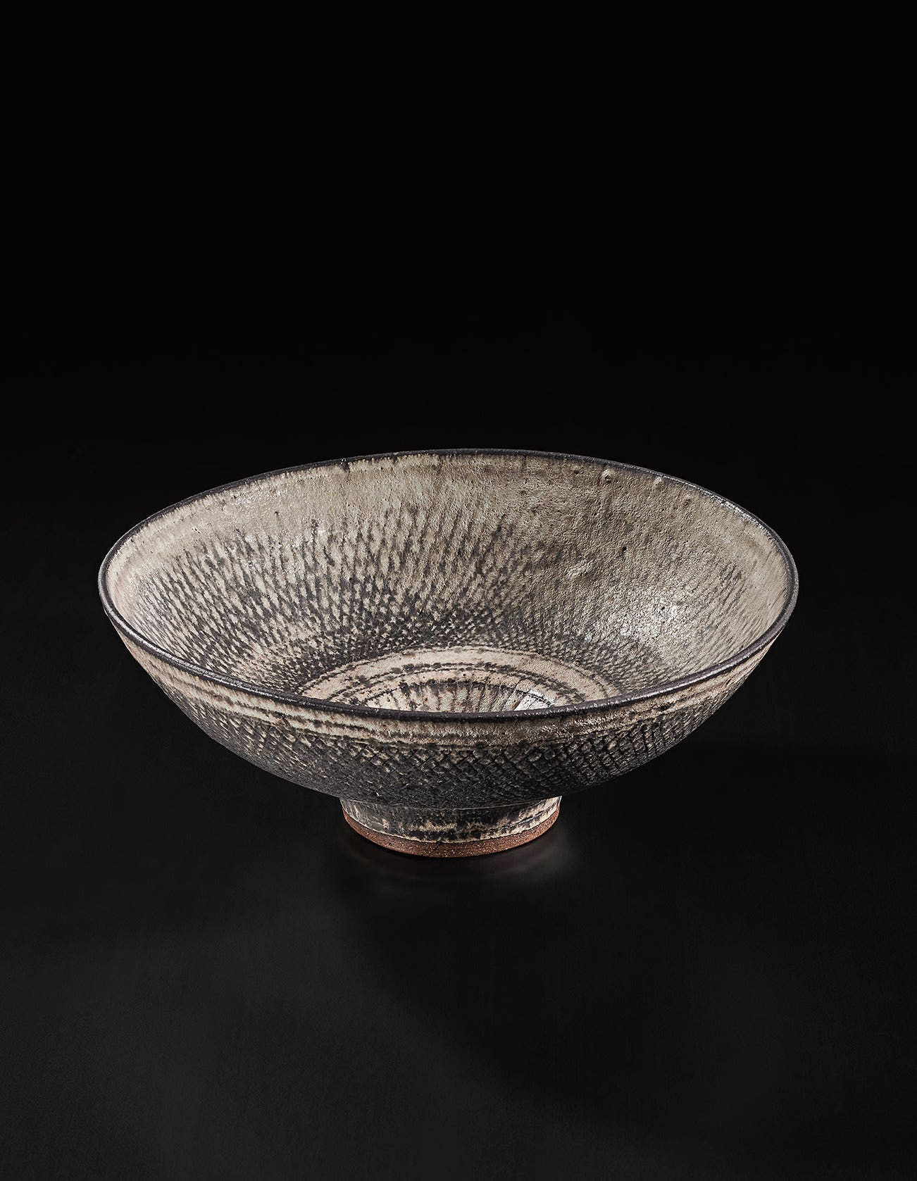 Austrian | B. 1902 D. 1995Dame Lucie Rie studied under Michael Powolny at the Kunstgewerbeschule in Vienna before immigrating to London in 1938. In London she started out making buttons for the fashion industry before producing austere, sparsely decorated tableware that caught the attention of modernist interior decorators. Eventually she hit her stride with the pitch-perfect footed bowls and flared vases for which she is best-known today. She worked in porcelain and stoneware, applying glaze directly to the unfired body and firing only once. She limited decoration to incised lines, subtle spirals and golden manganese lips, allowing the beauty of her thin-walled vessels to shine through. In contrast with the rustic pots of English ceramicist Bernard Leach, who is considered an heir to the Arts and Crafts movement, collectors and scholars revere Rie for creating pottery that was in dialogue with the design and architecture of European Modernism.