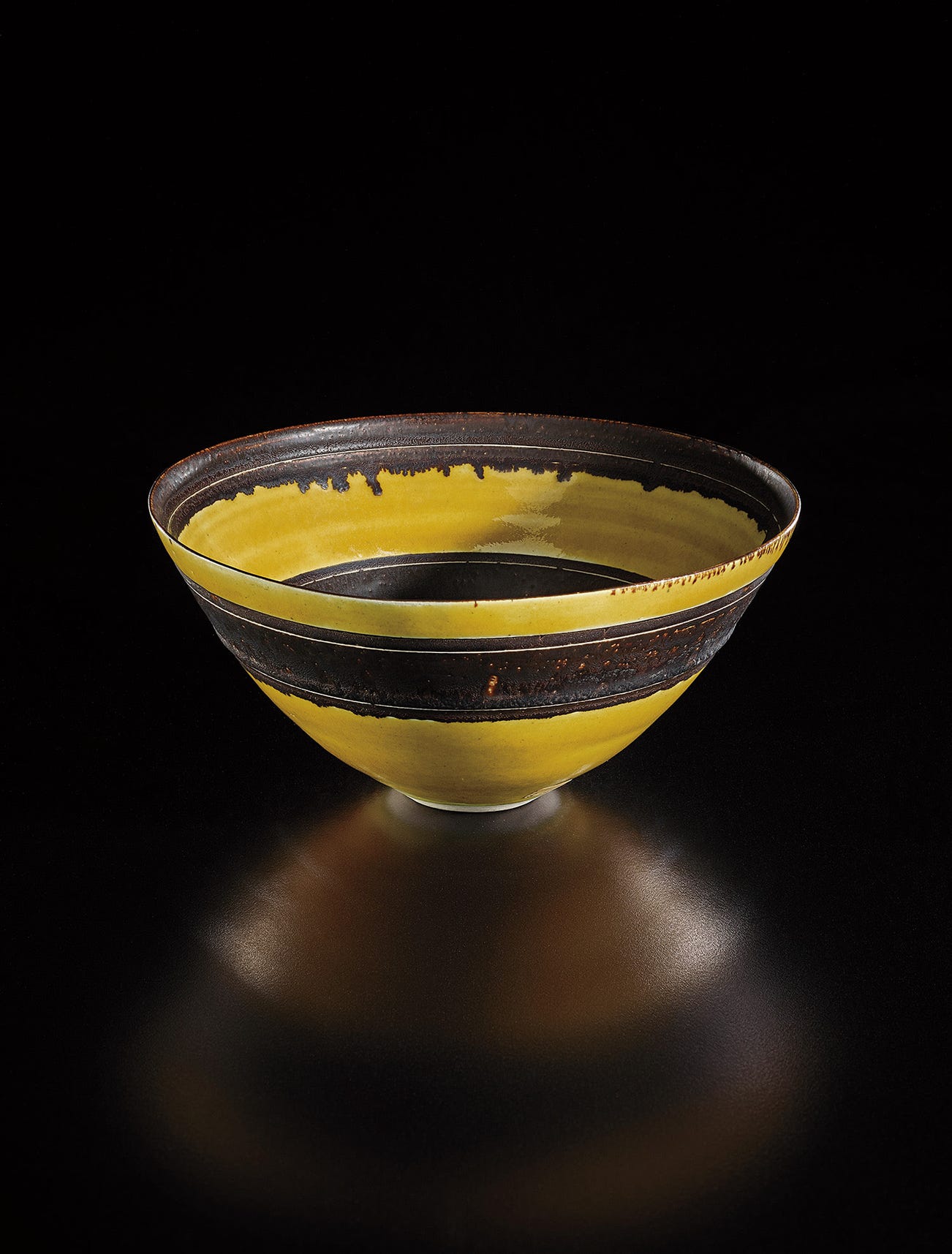 Austrian | B. 1902 D. 1995Dame Lucie Rie studied under Michael Powolny at the Kunstgewerbeschule in Vienna before immigrating to London in 1938. In London she started out making buttons for the fashion industry before producing austere, sparsely decorated tableware that caught the attention of modernist interior decorators. Eventually she hit her stride with the pitch-perfect footed bowls and flared vases for which she is best-known today. She worked in porcelain and stoneware, applying glaze directly to the unfired body and firing only once. She limited decoration to incised lines, subtle spirals and golden manganese lips, allowing the beauty of her thin-walled vessels to shine through. In contrast with the rustic pots of English ceramicist Bernard Leach, who is considered an heir to the Arts and Crafts movement, collectors and scholars revere Rie for creating pottery that was in dialogue with the design and architecture of European Modernism.
