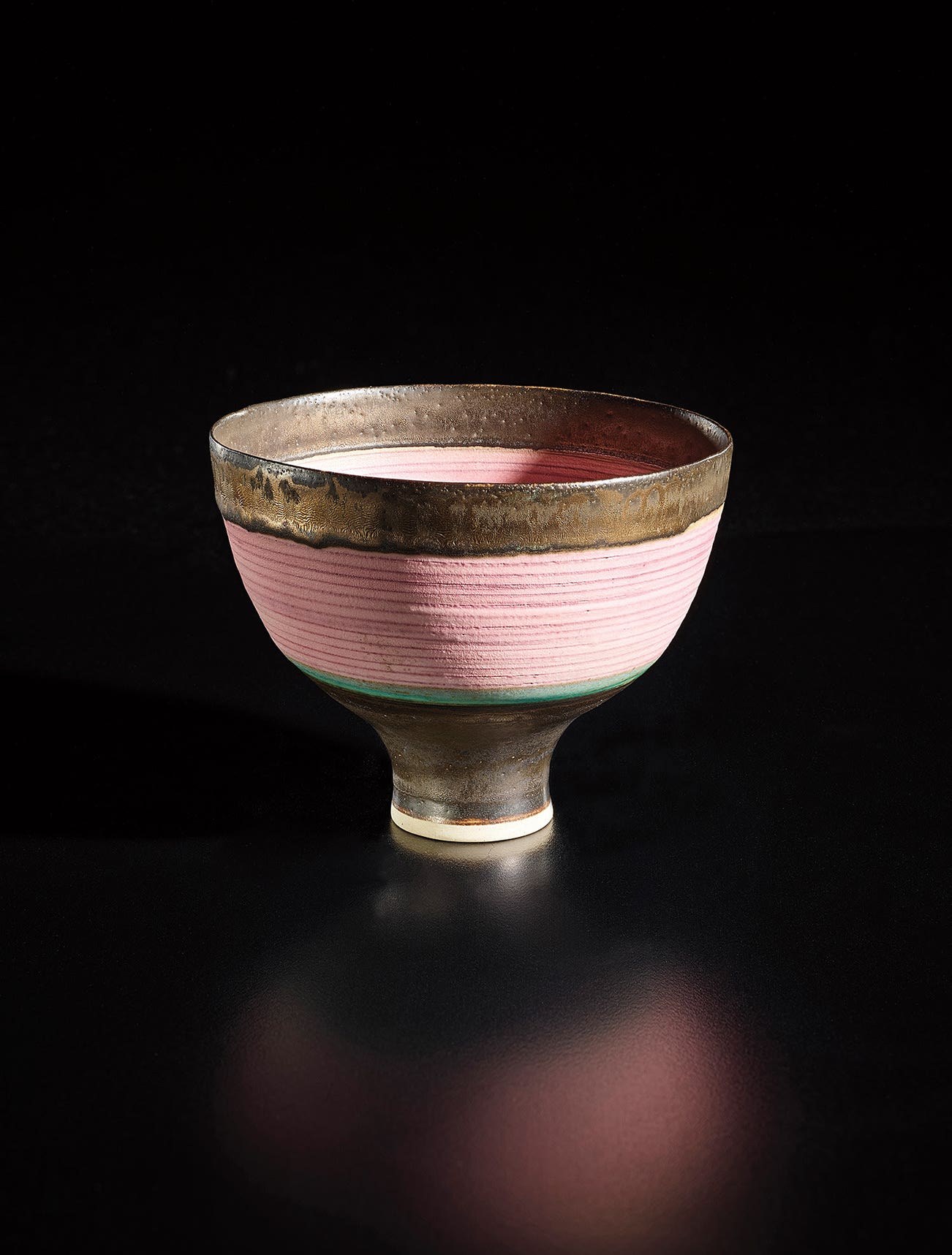 Austrian | B. 1902 D. 1995Dame Lucie Rie studied under Michael Powolny at the Kunstgewerbeschule in Vienna before immigrating to London in 1938. In London she started out making buttons for the fashion industry before producing austere, sparsely decorated tableware that caught the attention of modernist interior decorators. Eventually she hit her stride with the pitch-perfect footed bowls and flared vases for which she is best-known today. She worked in porcelain and stoneware, applying glaze directly to the unfired body and firing only once. She limited decoration to incised lines, subtle spirals and golden manganese lips, allowing the beauty of her thin-walled vessels to shine through. In contrast with the rustic pots of English ceramicist Bernard Leach, who is considered an heir to the Arts and Crafts movement, collectors and scholars revere Rie for creating pottery that was in dialogue with the design and architecture of European Modernism.