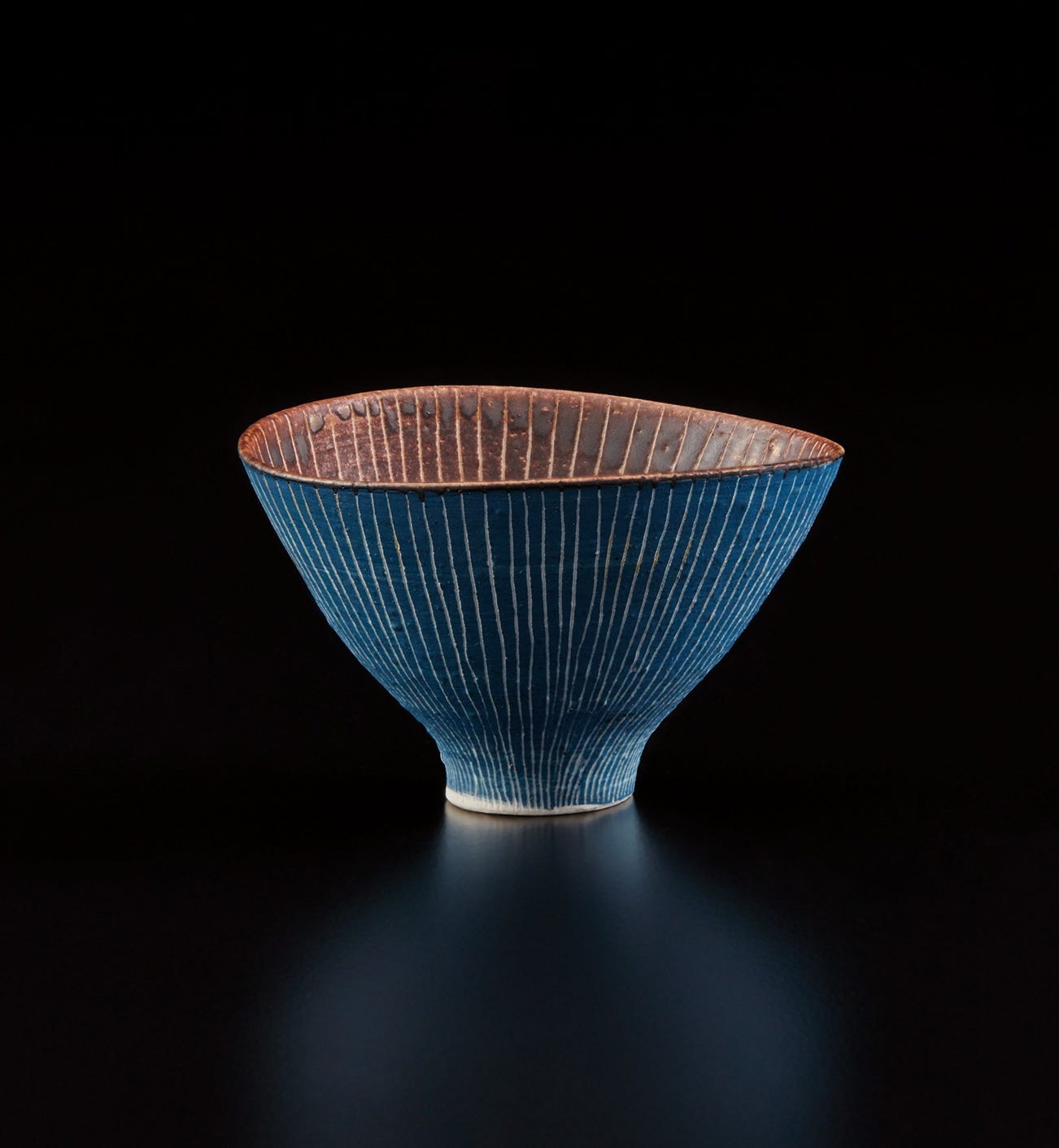 Austrian | B. 1902 D. 1995Dame Lucie Rie studied under Michael Powolny at the Kunstgewerbeschule in Vienna before immigrating to London in 1938. In London she started out making buttons for the fashion industry before producing austere, sparsely decorated tableware that caught the attention of modernist interior decorators. Eventually she hit her stride with the pitch-perfect footed bowls and flared vases for which she is best-known today. She worked in porcelain and stoneware, applying glaze directly to the unfired body and firing only once. She limited decoration to incised lines, subtle spirals and golden manganese lips, allowing the beauty of her thin-walled vessels to shine through. In contrast with the rustic pots of English ceramicist Bernard Leach, who is considered an heir to the Arts and Crafts movement, collectors and scholars revere Rie for creating pottery that was in dialogue with the design and architecture of European Modernism.