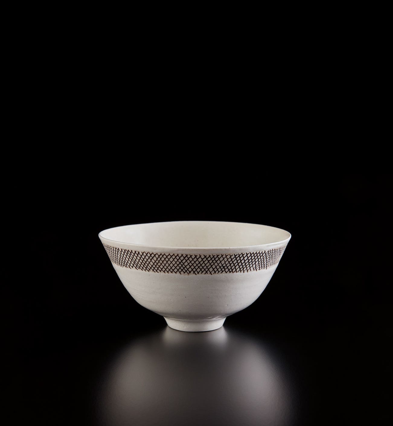Austrian | B. 1902 D. 1995Dame Lucie Rie studied under Michael Powolny at the Kunstgewerbeschule in Vienna before immigrating to London in 1938. In London she started out making buttons for the fashion industry before producing austere, sparsely decorated tableware that caught the attention of modernist interior decorators. Eventually she hit her stride with the pitch-perfect footed bowls and flared vases for which she is best-known today. She worked in porcelain and stoneware, applying glaze directly to the unfired body and firing only once. She limited decoration to incised lines, subtle spirals and golden manganese lips, allowing the beauty of her thin-walled vessels to shine through. In contrast with the rustic pots of English ceramicist Bernard Leach, who is considered an heir to the Arts and Crafts movement, collectors and scholars revere Rie for creating pottery that was in dialogue with the design and architecture of European Modernism.