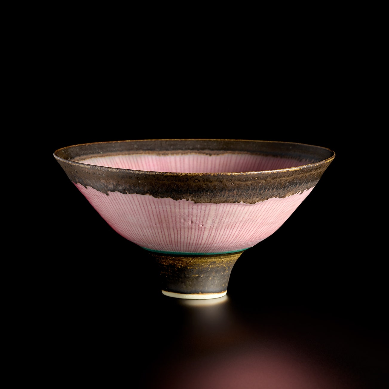Austrian | B. 1902 D. 1995Dame Lucie Rie studied under Michael Powolny at the Kunstgewerbeschule in Vienna before immigrating to London in 1938. In London she started out making buttons for the fashion industry before producing austere, sparsely decorated tableware that caught the attention of modernist interior decorators. Eventually she hit her stride with the pitch-perfect footed bowls and flared vases for which she is best-known today. She worked in porcelain and stoneware, applying glaze directly to the unfired body and firing only once. She limited decoration to incised lines, subtle spirals and golden manganese lips, allowing the beauty of her thin-walled vessels to shine through. In contrast with the rustic pots of English ceramicist Bernard Leach, who is considered an heir to the Arts and Crafts movement, collectors and scholars revere Rie for creating pottery that was in dialogue with the design and architecture of European Modernism.