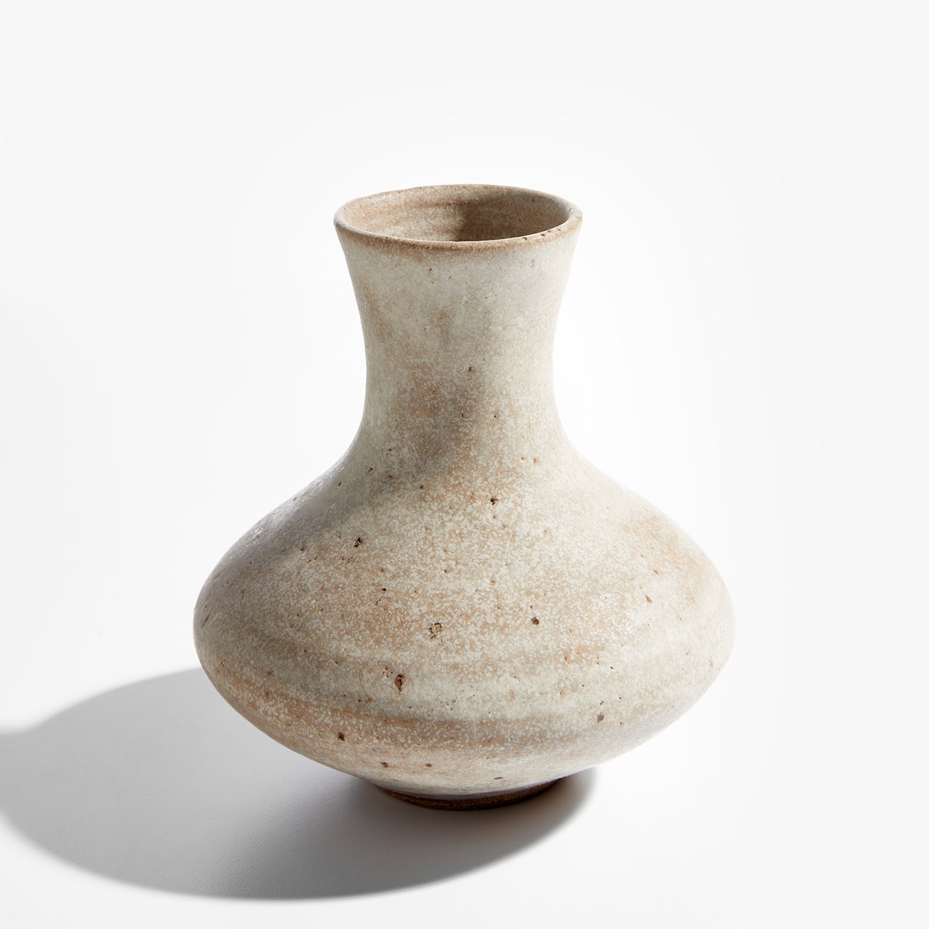 Austrian | B. 1902 D. 1995Dame Lucie Rie studied under Michael Powolny at the Kunstgewerbeschule in Vienna before immigrating to London in 1938. In London she started out making buttons for the fashion industry before producing austere, sparsely decorated tableware that caught the attention of modernist interior decorators. Eventually she hit her stride with the pitch-perfect footed bowls and flared vases for which she is best-known today. She worked in porcelain and stoneware, applying glaze directly to the unfired body and firing only once. She limited decoration to incised lines, subtle spirals and golden manganese lips, allowing the beauty of her thin-walled vessels to shine through. In contrast with the rustic pots of English ceramicist Bernard Leach, who is considered an heir to the Arts and Crafts movement, collectors and scholars revere Rie for creating pottery that was in dialogue with the design and architecture of European Modernism.