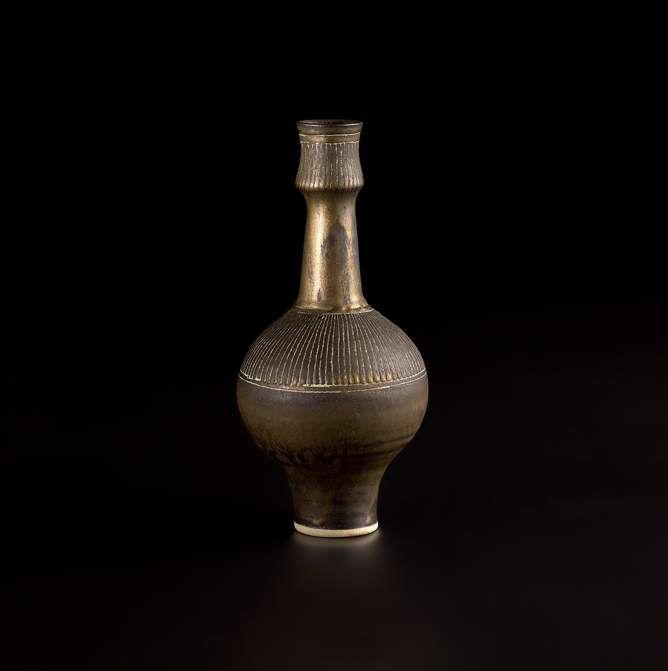Austrian | B. 1902 D. 1995Dame Lucie Rie studied under Michael Powolny at the Kunstgewerbeschule in Vienna before immigrating to London in 1938. In London she started out making buttons for the fashion industry before producing austere, sparsely decorated tableware that caught the attention of modernist interior decorators. Eventually she hit her stride with the pitch-perfect footed bowls and flared vases for which she is best-known today. She worked in porcelain and stoneware, applying glaze directly to the unfired body and firing only once. She limited decoration to incised lines, subtle spirals and golden manganese lips, allowing the beauty of her thin-walled vessels to shine through. In contrast with the rustic pots of English ceramicist Bernard Leach, who is considered an heir to the Arts and Crafts movement, collectors and scholars revere Rie for creating pottery that was in dialogue with the design and architecture of European Modernism.