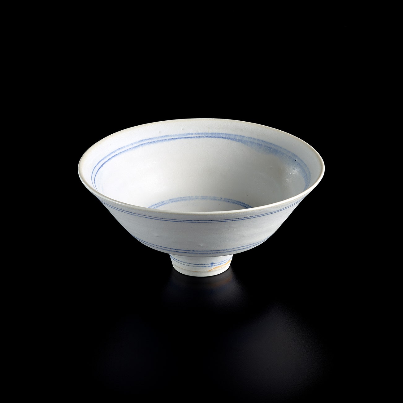 Austrian | B. 1902 D. 1995Dame Lucie Rie studied under Michael Powolny at the Kunstgewerbeschule in Vienna before immigrating to London in 1938. In London she started out making buttons for the fashion industry before producing austere, sparsely decorated tableware that caught the attention of modernist interior decorators. Eventually she hit her stride with the pitch-perfect footed bowls and flared vases for which she is best-known today. She worked in porcelain and stoneware, applying glaze directly to the unfired body and firing only once. She limited decoration to incised lines, subtle spirals and golden manganese lips, allowing the beauty of her thin-walled vessels to shine through. In contrast with the rustic pots of English ceramicist Bernard Leach, who is considered an heir to the Arts and Crafts movement, collectors and scholars revere Rie for creating pottery that was in dialogue with the design and architecture of European Modernism.