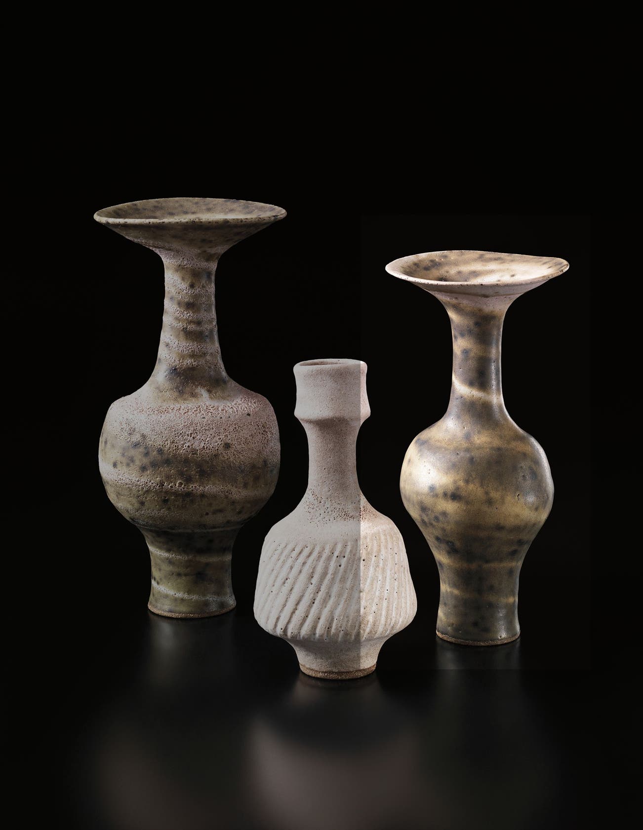 Austrian | B. 1902 D. 1995Dame Lucie Rie studied under Michael Powolny at the Kunstgewerbeschule in Vienna before immigrating to London in 1938. In London she started out making buttons for the fashion industry before producing austere, sparsely decorated tableware that caught the attention of modernist interior decorators. Eventually she hit her stride with the pitch-perfect footed bowls and flared vases for which she is best-known today. She worked in porcelain and stoneware, applying glaze directly to the unfired body and firing only once. She limited decoration to incised lines, subtle spirals and golden manganese lips, allowing the beauty of her thin-walled vessels to shine through. In contrast with the rustic pots of English ceramicist Bernard Leach, who is considered an heir to the Arts and Crafts movement, collectors and scholars revere Rie for creating pottery that was in dialogue with the design and architecture of European Modernism.