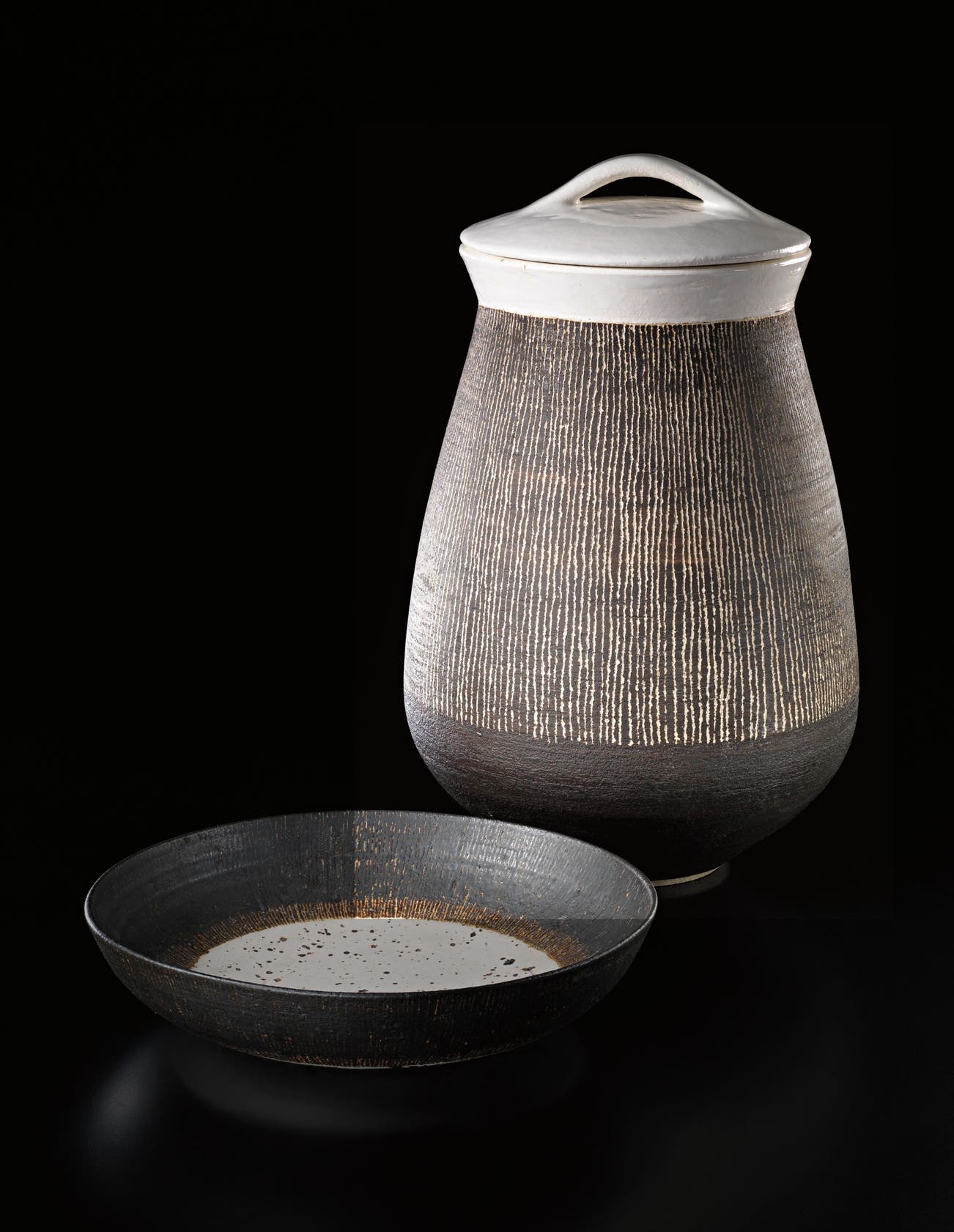 Austrian | B. 1902 D. 1995Dame Lucie Rie studied under Michael Powolny at the Kunstgewerbeschule in Vienna before immigrating to London in 1938. In London she started out making buttons for the fashion industry before producing austere, sparsely decorated tableware that caught the attention of modernist interior decorators. Eventually she hit her stride with the pitch-perfect footed bowls and flared vases for which she is best-known today. She worked in porcelain and stoneware, applying glaze directly to the unfired body and firing only once. She limited decoration to incised lines, subtle spirals and golden manganese lips, allowing the beauty of her thin-walled vessels to shine through. In contrast with the rustic pots of English ceramicist Bernard Leach, who is considered an heir to the Arts and Crafts movement, collectors and scholars revere Rie for creating pottery that was in dialogue with the design and architecture of European Modernism.