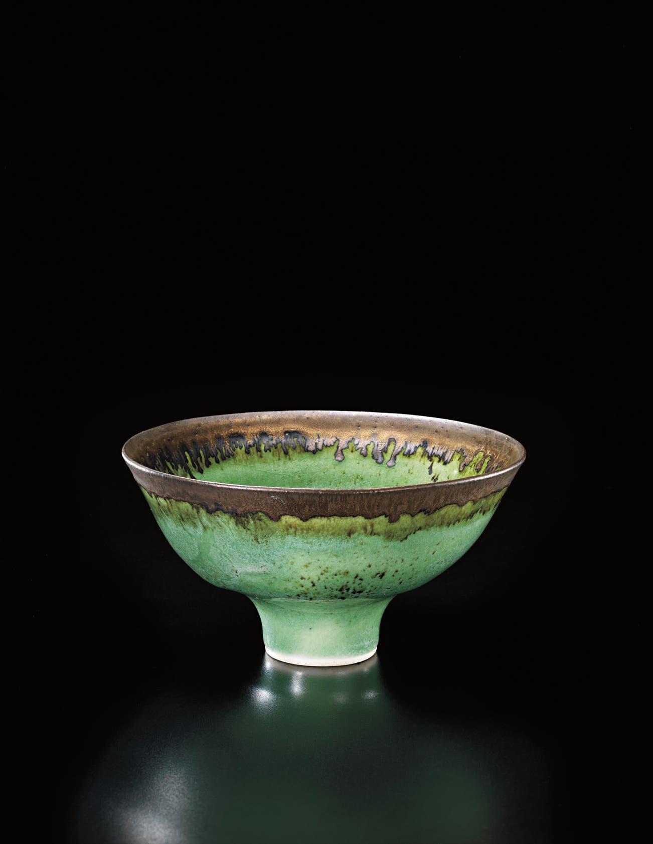 Austrian | B. 1902 D. 1995Dame Lucie Rie studied under Michael Powolny at the Kunstgewerbeschule in Vienna before immigrating to London in 1938. In London she started out making buttons for the fashion industry before producing austere, sparsely decorated tableware that caught the attention of modernist interior decorators. Eventually she hit her stride with the pitch-perfect footed bowls and flared vases for which she is best-known today. She worked in porcelain and stoneware, applying glaze directly to the unfired body and firing only once. She limited decoration to incised lines, subtle spirals and golden manganese lips, allowing the beauty of her thin-walled vessels to shine through. In contrast with the rustic pots of English ceramicist Bernard Leach, who is considered an heir to the Arts and Crafts movement, collectors and scholars revere Rie for creating pottery that was in dialogue with the design and architecture of European Modernism.