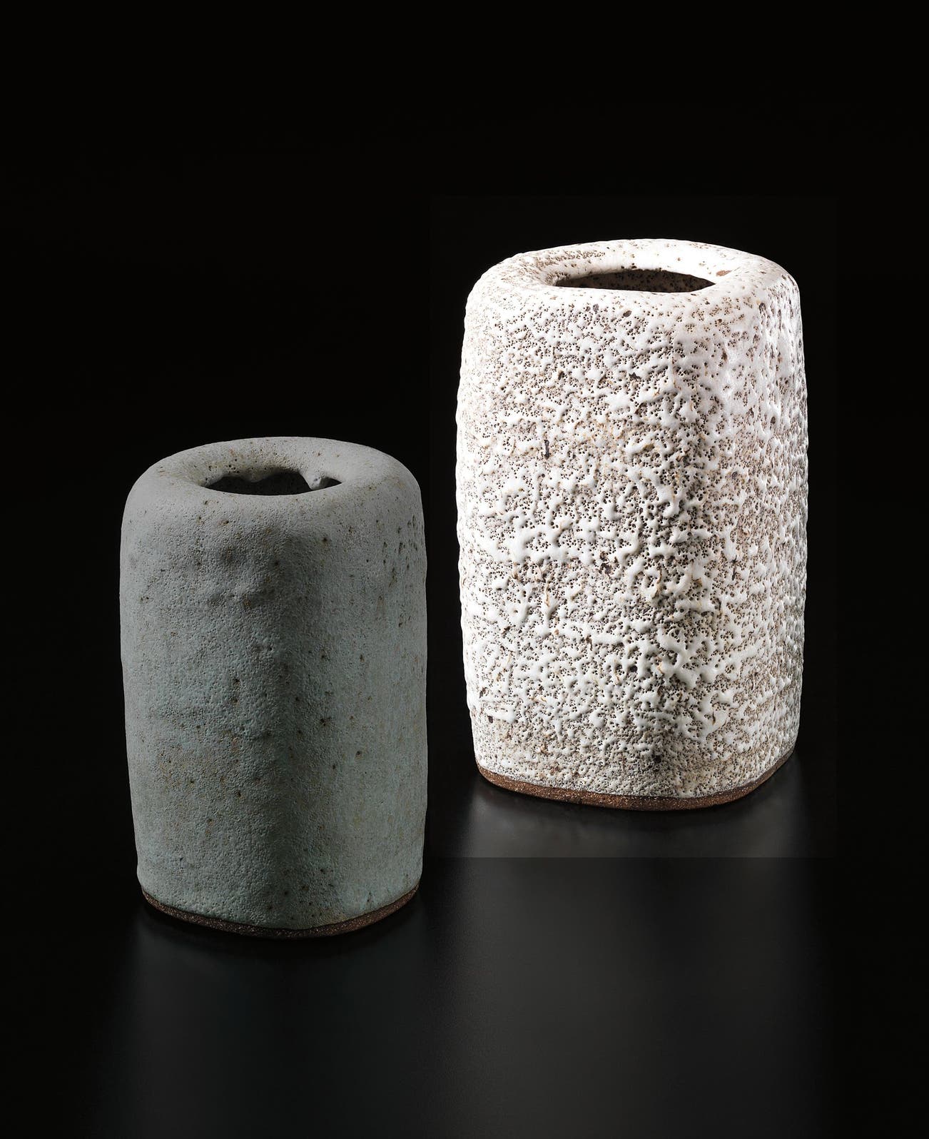 Austrian | B. 1902 D. 1995Dame Lucie Rie studied under Michael Powolny at the Kunstgewerbeschule in Vienna before immigrating to London in 1938. In London she started out making buttons for the fashion industry before producing austere, sparsely decorated tableware that caught the attention of modernist interior decorators. Eventually she hit her stride with the pitch-perfect footed bowls and flared vases for which she is best-known today. She worked in porcelain and stoneware, applying glaze directly to the unfired body and firing only once. She limited decoration to incised lines, subtle spirals and golden manganese lips, allowing the beauty of her thin-walled vessels to shine through. In contrast with the rustic pots of English ceramicist Bernard Leach, who is considered an heir to the Arts and Crafts movement, collectors and scholars revere Rie for creating pottery that was in dialogue with the design and architecture of European Modernism.