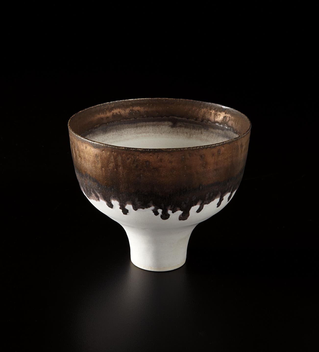 Austrian | B. 1902 D. 1995Dame Lucie Rie studied under Michael Powolny at the Kunstgewerbeschule in Vienna before immigrating to London in 1938. In London she started out making buttons for the fashion industry before producing austere, sparsely decorated tableware that caught the attention of modernist interior decorators. Eventually she hit her stride with the pitch-perfect footed bowls and flared vases for which she is best-known today. She worked in porcelain and stoneware, applying glaze directly to the unfired body and firing only once. She limited decoration to incised lines, subtle spirals and golden manganese lips, allowing the beauty of her thin-walled vessels to shine through. In contrast with the rustic pots of English ceramicist Bernard Leach, who is considered an heir to the Arts and Crafts movement, collectors and scholars revere Rie for creating pottery that was in dialogue with the design and architecture of European Modernism.