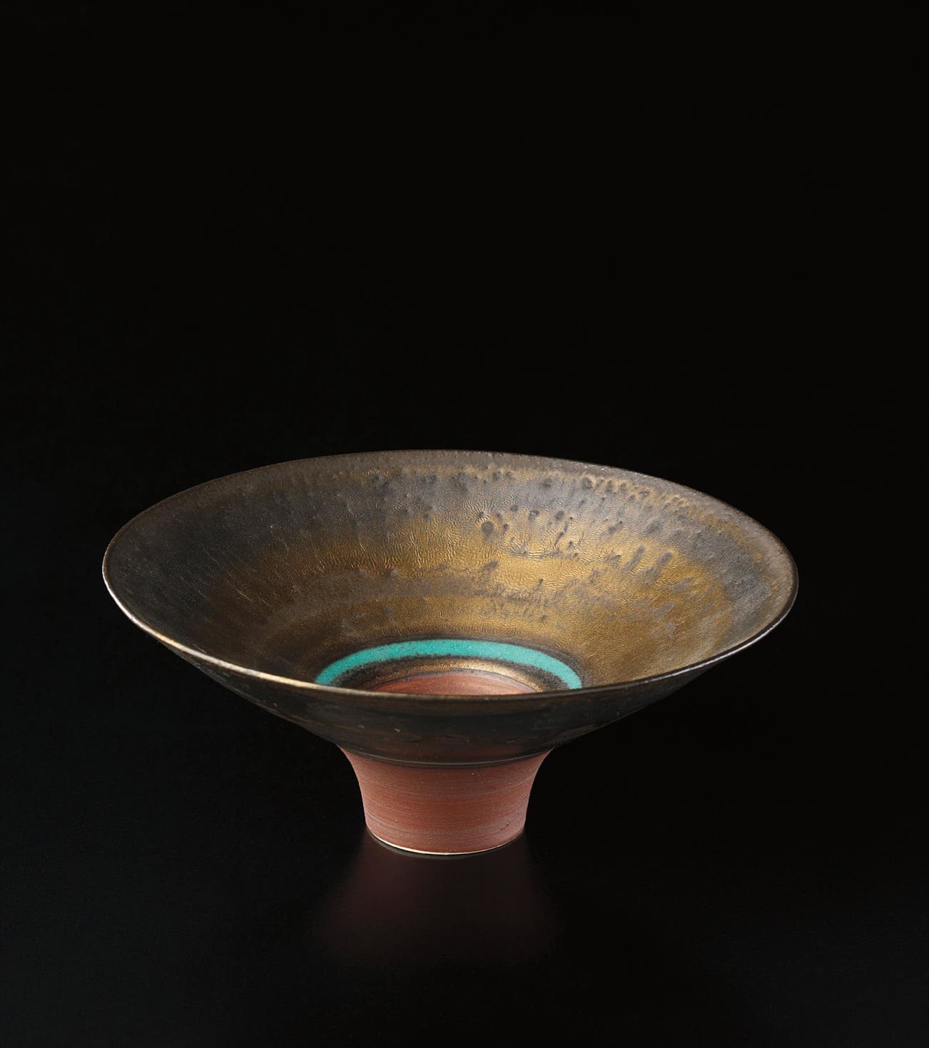 Austrian | B. 1902 D. 1995Dame Lucie Rie studied under Michael Powolny at the Kunstgewerbeschule in Vienna before immigrating to London in 1938. In London she started out making buttons for the fashion industry before producing austere, sparsely decorated tableware that caught the attention of modernist interior decorators. Eventually she hit her stride with the pitch-perfect footed bowls and flared vases for which she is best-known today. She worked in porcelain and stoneware, applying glaze directly to the unfired body and firing only once. She limited decoration to incised lines, subtle spirals and golden manganese lips, allowing the beauty of her thin-walled vessels to shine through. In contrast with the rustic pots of English ceramicist Bernard Leach, who is considered an heir to the Arts and Crafts movement, collectors and scholars revere Rie for creating pottery that was in dialogue with the design and architecture of European Modernism.