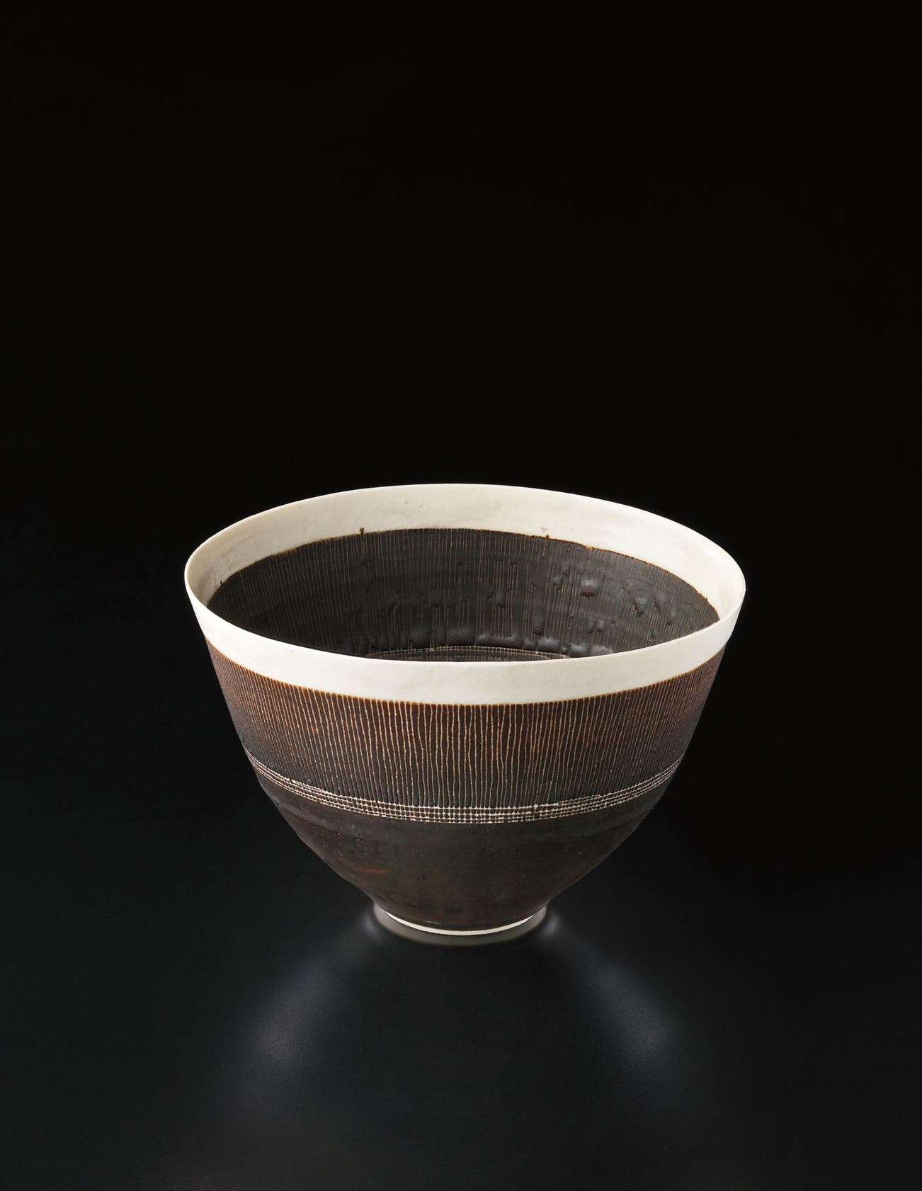 Austrian | B. 1902 D. 1995Dame Lucie Rie studied under Michael Powolny at the Kunstgewerbeschule in Vienna before immigrating to London in 1938. In London she started out making buttons for the fashion industry before producing austere, sparsely decorated tableware that caught the attention of modernist interior decorators. Eventually she hit her stride with the pitch-perfect footed bowls and flared vases for which she is best-known today. She worked in porcelain and stoneware, applying glaze directly to the unfired body and firing only once. She limited decoration to incised lines, subtle spirals and golden manganese lips, allowing the beauty of her thin-walled vessels to shine through. In contrast with the rustic pots of English ceramicist Bernard Leach, who is considered an heir to the Arts and Crafts movement, collectors and scholars revere Rie for creating pottery that was in dialogue with the design and architecture of European Modernism.