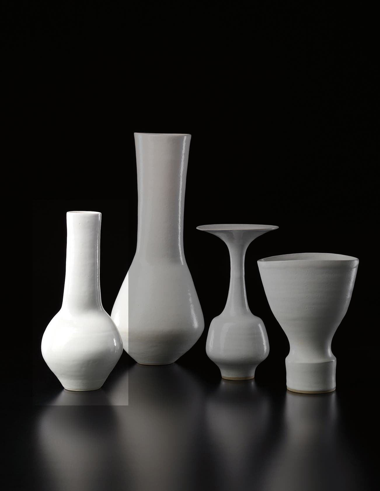 Austrian | B. 1902 D. 1995Dame Lucie Rie studied under Michael Powolny at the Kunstgewerbeschule in Vienna before immigrating to London in 1938. In London she started out making buttons for the fashion industry before producing austere, sparsely decorated tableware that caught the attention of modernist interior decorators. Eventually she hit her stride with the pitch-perfect footed bowls and flared vases for which she is best-known today. She worked in porcelain and stoneware, applying glaze directly to the unfired body and firing only once. She limited decoration to incised lines, subtle spirals and golden manganese lips, allowing the beauty of her thin-walled vessels to shine through. In contrast with the rustic pots of English ceramicist Bernard Leach, who is considered an heir to the Arts and Crafts movement, collectors and scholars revere Rie for creating pottery that was in dialogue with the design and architecture of European Modernism.
