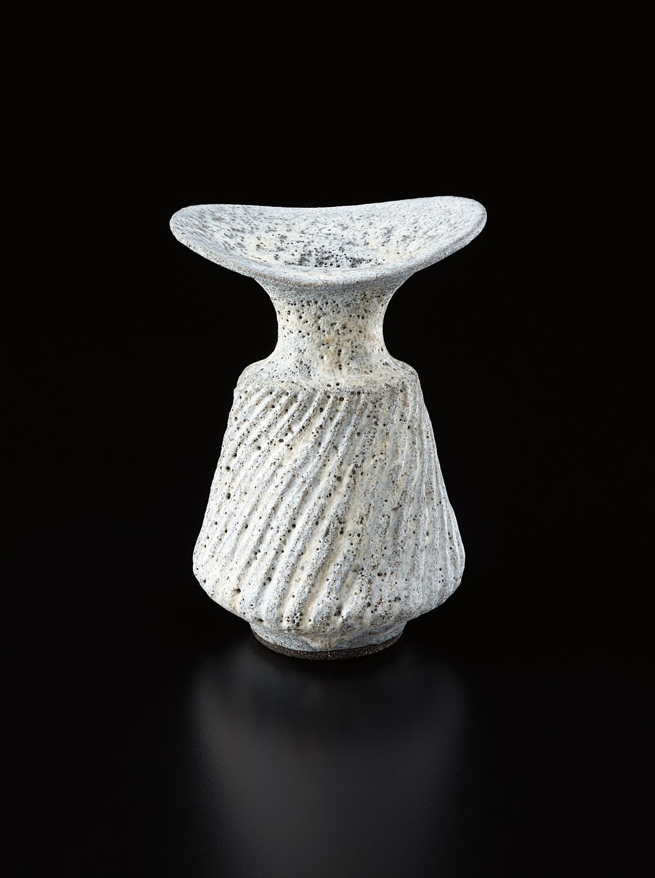 Austrian | B. 1902 D. 1995Dame Lucie Rie studied under Michael Powolny at the Kunstgewerbeschule in Vienna before immigrating to London in 1938. In London she started out making buttons for the fashion industry before producing austere, sparsely decorated tableware that caught the attention of modernist interior decorators. Eventually she hit her stride with the pitch-perfect footed bowls and flared vases for which she is best-known today. She worked in porcelain and stoneware, applying glaze directly to the unfired body and firing only once. She limited decoration to incised lines, subtle spirals and golden manganese lips, allowing the beauty of her thin-walled vessels to shine through. In contrast with the rustic pots of English ceramicist Bernard Leach, who is considered an heir to the Arts and Crafts movement, collectors and scholars revere Rie for creating pottery that was in dialogue with the design and architecture of European Modernism.