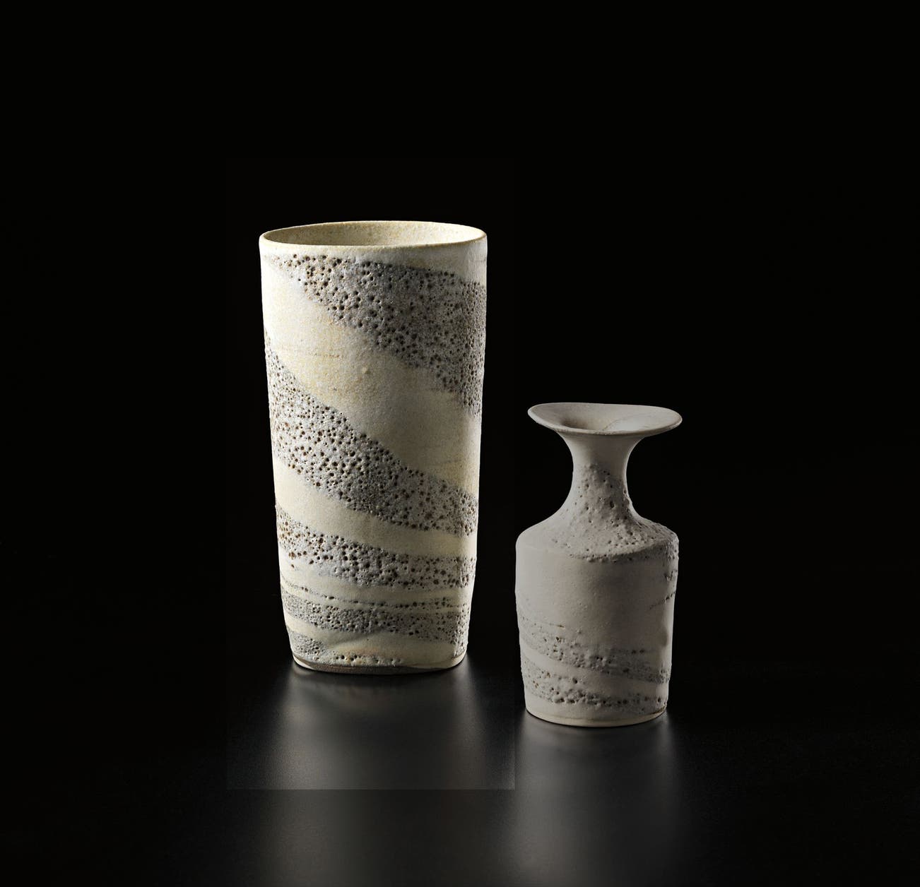Austrian | B. 1902 D. 1995Dame Lucie Rie studied under Michael Powolny at the Kunstgewerbeschule in Vienna before immigrating to London in 1938. In London she started out making buttons for the fashion industry before producing austere, sparsely decorated tableware that caught the attention of modernist interior decorators. Eventually she hit her stride with the pitch-perfect footed bowls and flared vases for which she is best-known today. She worked in porcelain and stoneware, applying glaze directly to the unfired body and firing only once. She limited decoration to incised lines, subtle spirals and golden manganese lips, allowing the beauty of her thin-walled vessels to shine through. In contrast with the rustic pots of English ceramicist Bernard Leach, who is considered an heir to the Arts and Crafts movement, collectors and scholars revere Rie for creating pottery that was in dialogue with the design and architecture of European Modernism.
