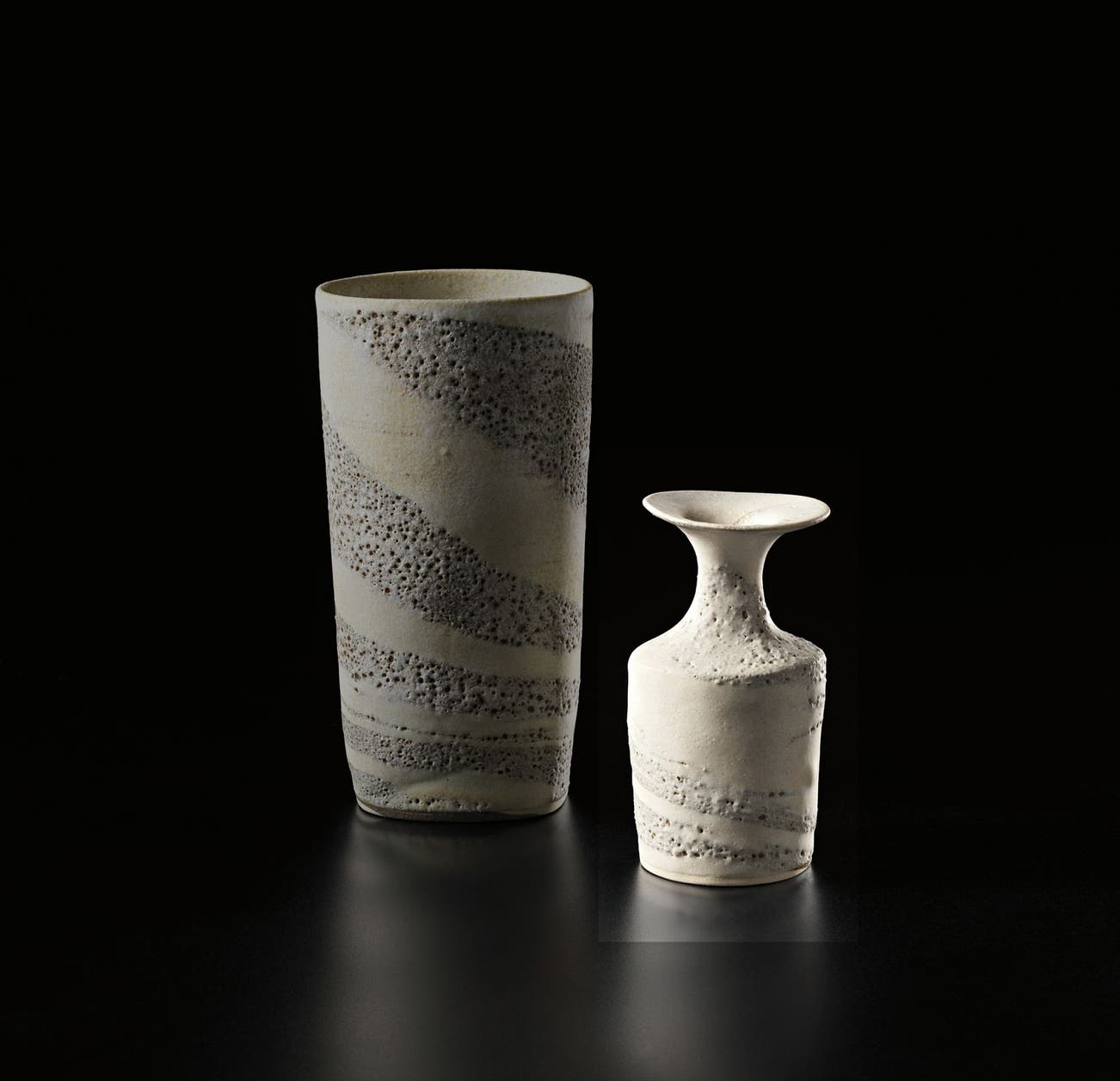 Austrian | B. 1902 D. 1995Dame Lucie Rie studied under Michael Powolny at the Kunstgewerbeschule in Vienna before immigrating to London in 1938. In London she started out making buttons for the fashion industry before producing austere, sparsely decorated tableware that caught the attention of modernist interior decorators. Eventually she hit her stride with the pitch-perfect footed bowls and flared vases for which she is best-known today. She worked in porcelain and stoneware, applying glaze directly to the unfired body and firing only once. She limited decoration to incised lines, subtle spirals and golden manganese lips, allowing the beauty of her thin-walled vessels to shine through. In contrast with the rustic pots of English ceramicist Bernard Leach, who is considered an heir to the Arts and Crafts movement, collectors and scholars revere Rie for creating pottery that was in dialogue with the design and architecture of European Modernism.