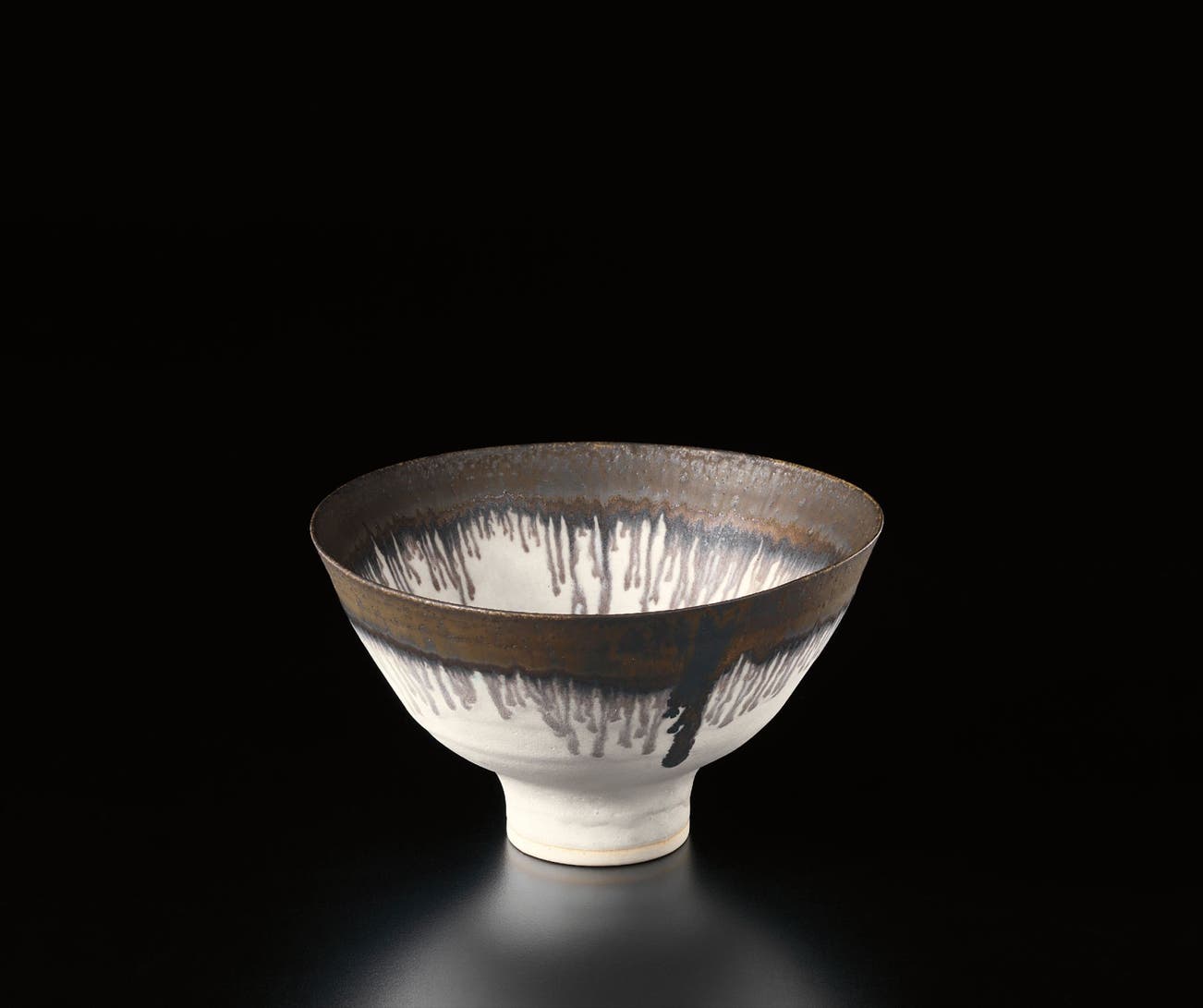 Austrian | B. 1902 D. 1995Dame Lucie Rie studied under Michael Powolny at the Kunstgewerbeschule in Vienna before immigrating to London in 1938. In London she started out making buttons for the fashion industry before producing austere, sparsely decorated tableware that caught the attention of modernist interior decorators. Eventually she hit her stride with the pitch-perfect footed bowls and flared vases for which she is best-known today. She worked in porcelain and stoneware, applying glaze directly to the unfired body and firing only once. She limited decoration to incised lines, subtle spirals and golden manganese lips, allowing the beauty of her thin-walled vessels to shine through. In contrast with the rustic pots of English ceramicist Bernard Leach, who is considered an heir to the Arts and Crafts movement, collectors and scholars revere Rie for creating pottery that was in dialogue with the design and architecture of European Modernism.
