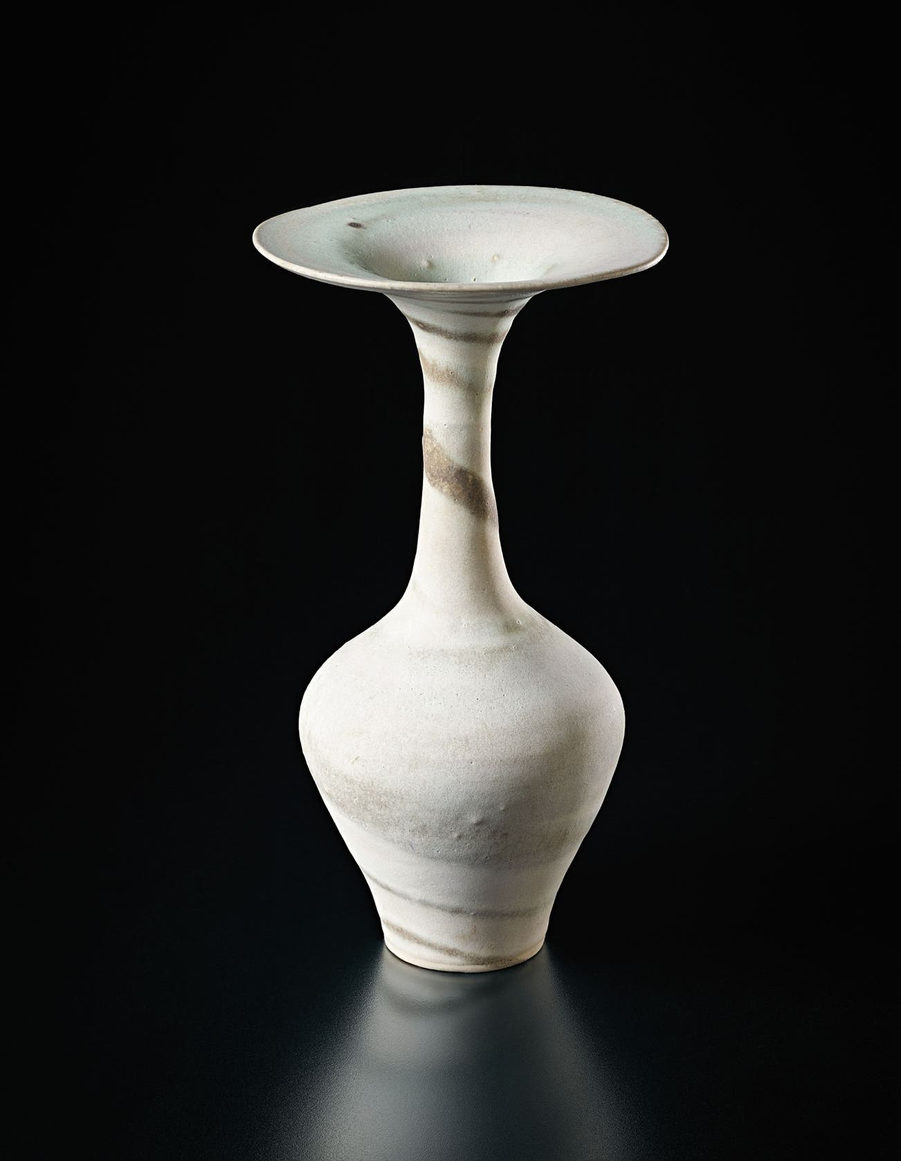Austrian | B. 1902 D. 1995Dame Lucie Rie studied under Michael Powolny at the Kunstgewerbeschule in Vienna before immigrating to London in 1938. In London she started out making buttons for the fashion industry before producing austere, sparsely decorated tableware that caught the attention of modernist interior decorators. Eventually she hit her stride with the pitch-perfect footed bowls and flared vases for which she is best-known today. She worked in porcelain and stoneware, applying glaze directly to the unfired body and firing only once. She limited decoration to incised lines, subtle spirals and golden manganese lips, allowing the beauty of her thin-walled vessels to shine through. In contrast with the rustic pots of English ceramicist Bernard Leach, who is considered an heir to the Arts and Crafts movement, collectors and scholars revere Rie for creating pottery that was in dialogue with the design and architecture of European Modernism.
