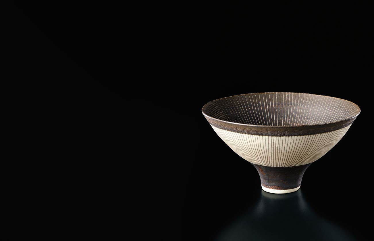 Austrian | B. 1902 D. 1995Dame Lucie Rie studied under Michael Powolny at the Kunstgewerbeschule in Vienna before immigrating to London in 1938. In London she started out making buttons for the fashion industry before producing austere, sparsely decorated tableware that caught the attention of modernist interior decorators. Eventually she hit her stride with the pitch-perfect footed bowls and flared vases for which she is best-known today. She worked in porcelain and stoneware, applying glaze directly to the unfired body and firing only once. She limited decoration to incised lines, subtle spirals and golden manganese lips, allowing the beauty of her thin-walled vessels to shine through. In contrast with the rustic pots of English ceramicist Bernard Leach, who is considered an heir to the Arts and Crafts movement, collectors and scholars revere Rie for creating pottery that was in dialogue with the design and architecture of European Modernism.