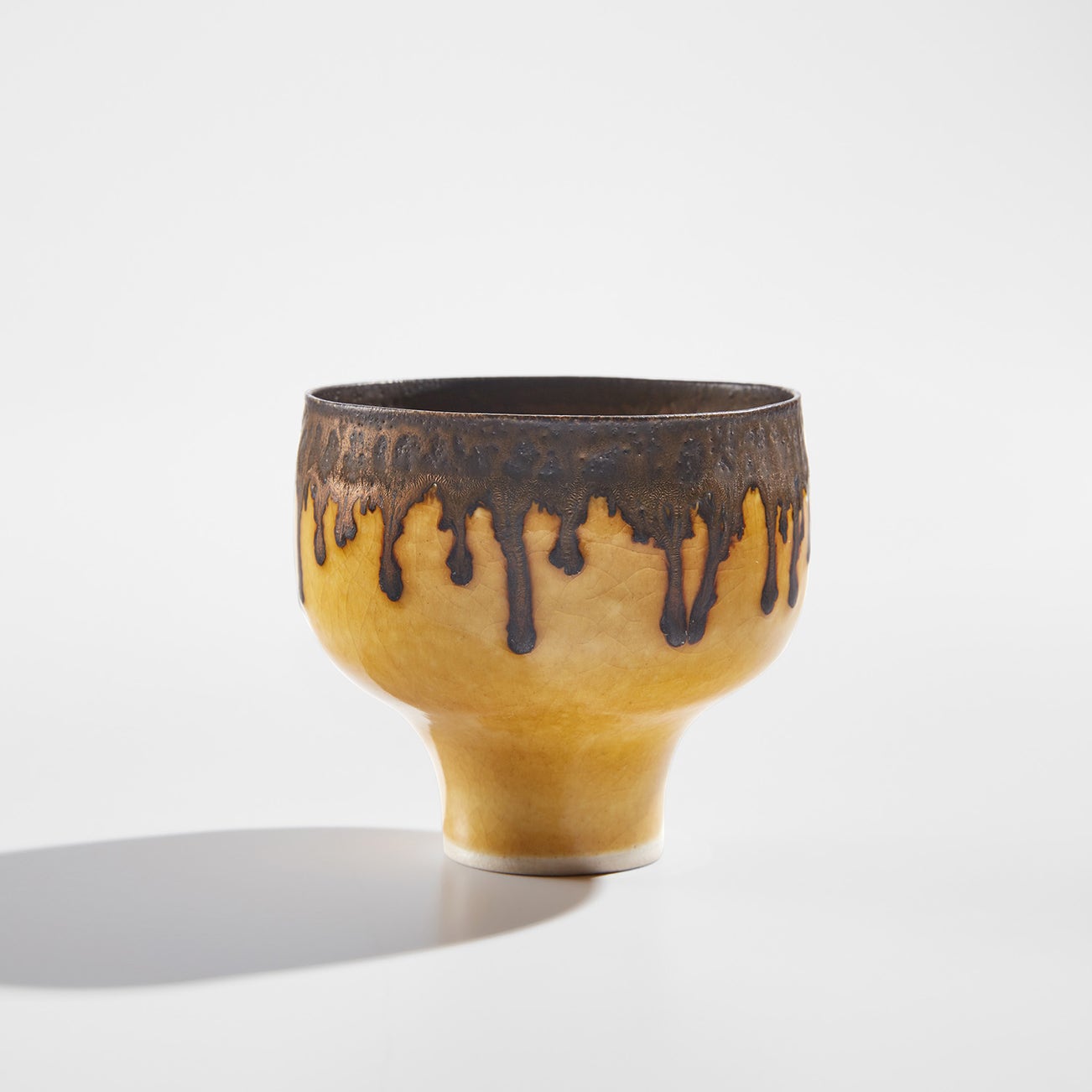 Austrian | B. 1902 D. 1995Dame Lucie Rie studied under Michael Powolny at the Kunstgewerbeschule in Vienna before immigrating to London in 1938. In London she started out making buttons for the fashion industry before producing austere, sparsely decorated tableware that caught the attention of modernist interior decorators. Eventually she hit her stride with the pitch-perfect footed bowls and flared vases for which she is best-known today. She worked in porcelain and stoneware, applying glaze directly to the unfired body and firing only once. She limited decoration to incised lines, subtle spirals and golden manganese lips, allowing the beauty of her thin-walled vessels to shine through. In contrast with the rustic pots of English ceramicist Bernard Leach, who is considered an heir to the Arts and Crafts movement, collectors and scholars revere Rie for creating pottery that was in dialogue with the design and architecture of European Modernism.