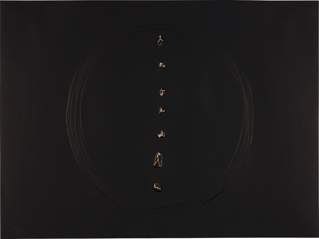 Etching and aquatint in black with punched holes, on wove paper, the full sheet.