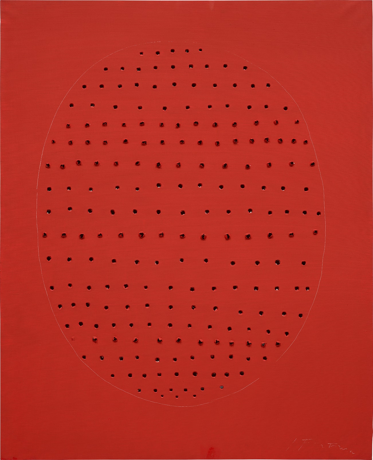 signed 'l. Fontana' lower right; signed and titled 'l. Fontana "Concetto Spaziale"' on the reverse